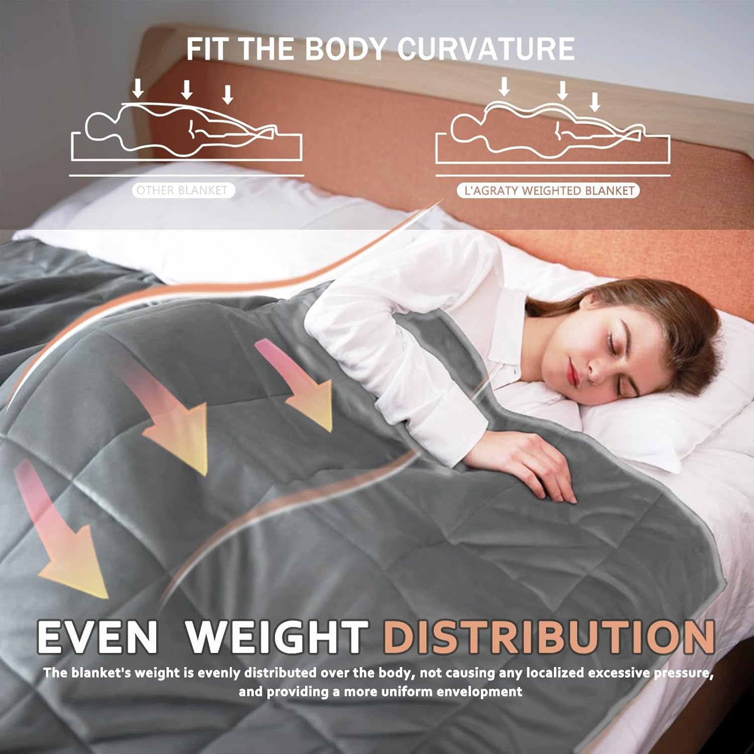 L'AGRATY Weighted Blanket - 48"x72" 15lbs Soft Breathable Heavy Blanket Minky Material with Glass Beads for Adult All-Season Summer Fall Winter Soft Thick Comfort