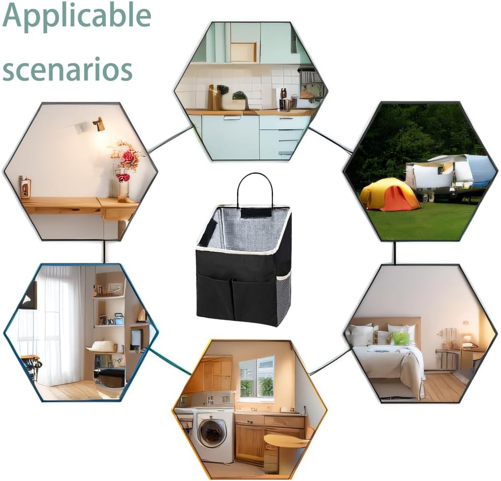 2pcs Wall Hanging Storage Bag,Wall Hanging Organizer Bags with Pockets, Wall Organizer Storage for Dormitory Bathroom Bedroom Kitchen(Black)
