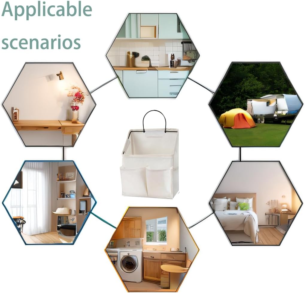 4pcs Wall Hanging Storage Bag,Wall Hanging Organizer bags with Pockets, Wall Organizer Storage for Dormitory Bathroom Bedroom (White-upgraded)