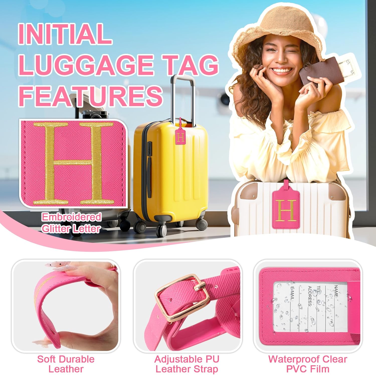- ✈【Embroidered Initials Luggage Tag】Cute exquisite A-Z personalized luggage tag for suitcases with gold border glitter embroidered letter patch, the letters are made from carefully stitched gold-colored thread.Firmly sewn to the tag, you don't have to worry about them falling off. Bright gold letters and vibrant luggage tag colors to help your suitcases be more easily recognizable at baggage claim.Monogram travel tags make your luggage more personal.