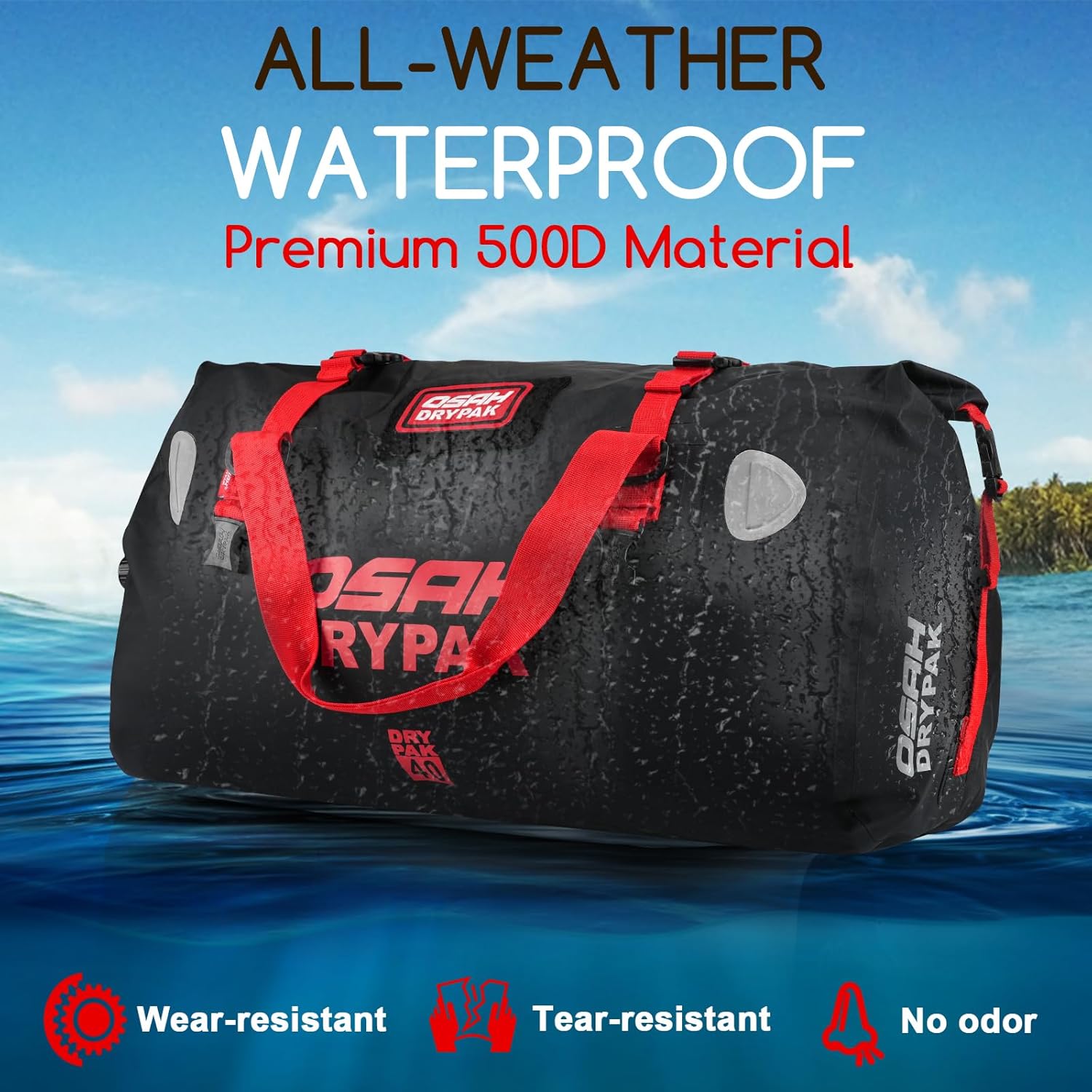 - WATERTIGHT PROTECTION: OSAH DRYPAK duffel bag is made of durable high-strength PVC, which is completely waterproof & snowproof. Ideal weekender bag for all your sailing, fishing, camping, sporting, boating, and motorcycling travel adventures.
