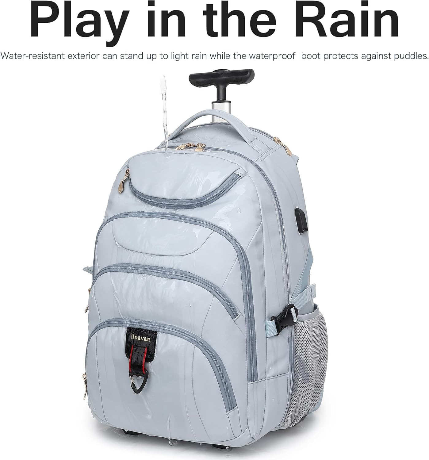 Boavan Rolling Backpack for Women, 17.3 Inch Wheeled Laptop Backpack,Large Travel Carry-On Bag for Teachers College Students, USB Charging Port Waterproof Business for Airplane Overnight Luggage,Blue