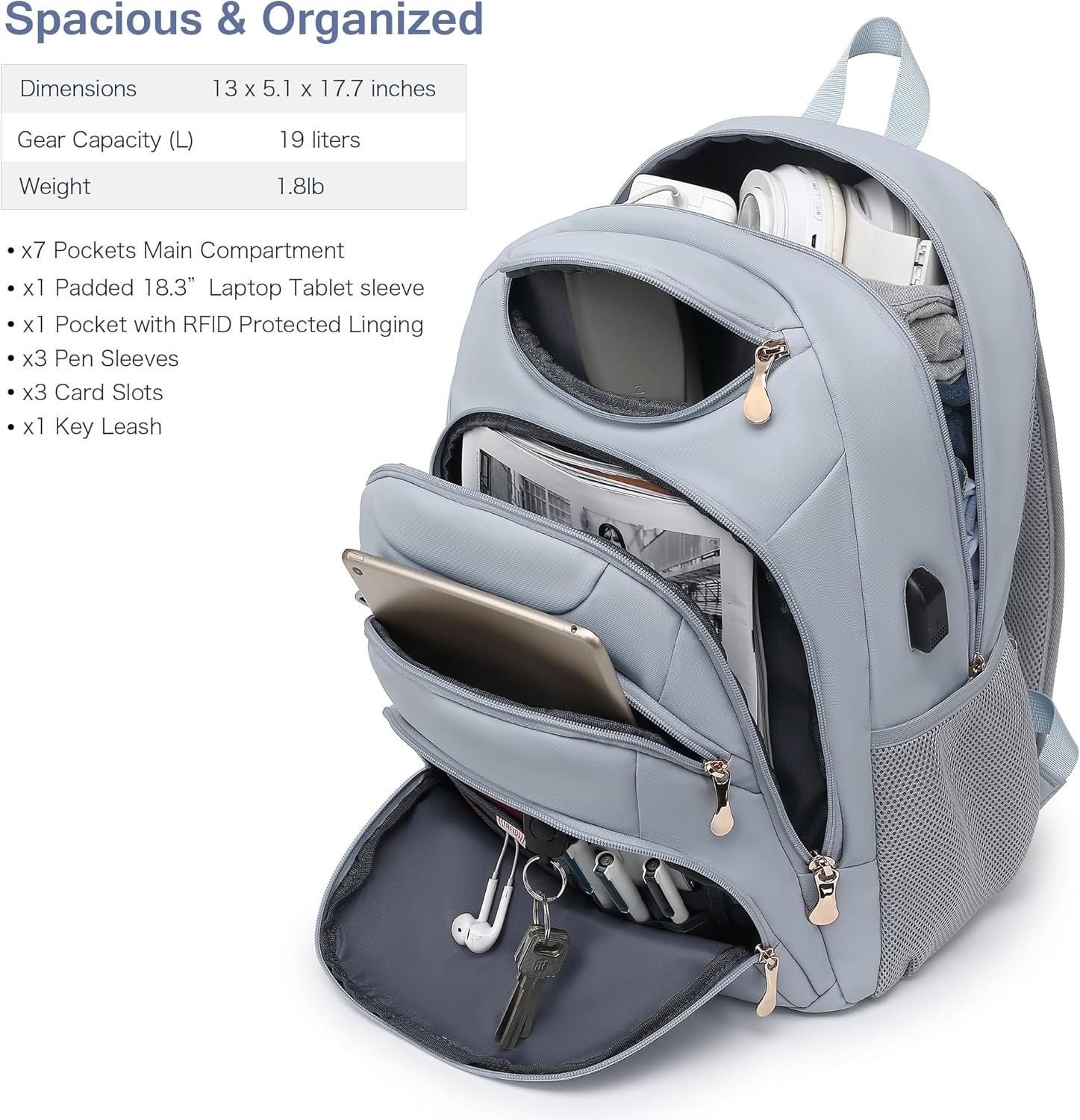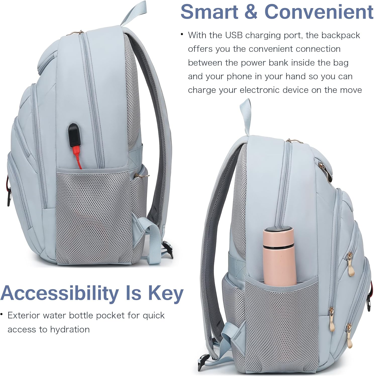 Boavan Laptop Backpack for women, 15.6 inch Laptop Bag with USB Port, Waterproof Travel Work Backpack Purse, Anti-Theft Teacher Nurse Doctor Casual Bookbags Office Business backpack,Blue