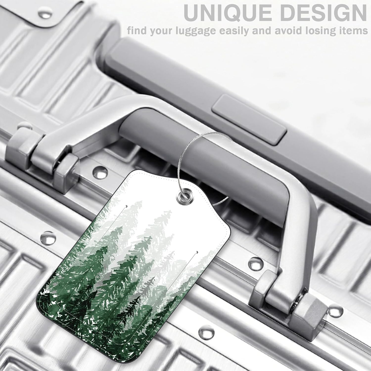 2 Pack Luggage Tags for Suitcases Watercolor Foggy Forest Leather Luggage Tags Privacy Cover ID Label with Stainless Steel Loop and Address Card for Women Men Travel Bag Backpack