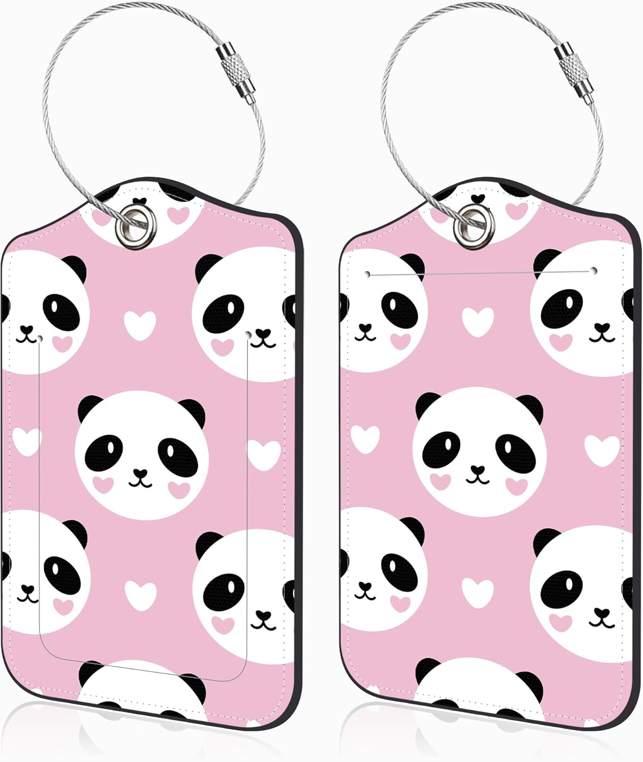 2 Pcs Cute Panda and Heart Luggage Tags for Suitcases PU Leather Baggage Tags Name ID Label with Privacy Cover and Stainless Steel Loop for Men Women Travel Bag Suitcase