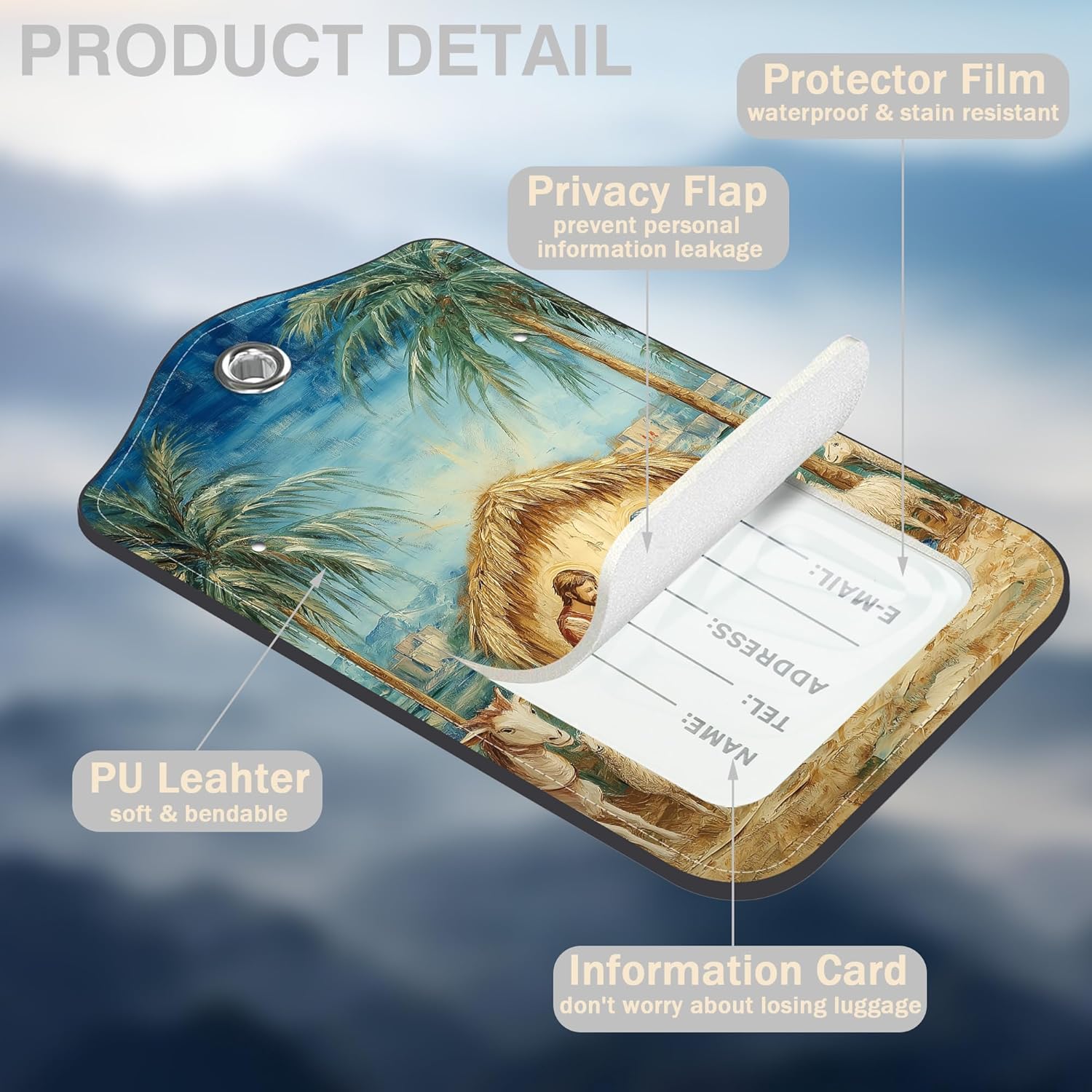 2 Pcs Nativity Scene Luggage Tags for Suitcases PU Leather Baggage Tags Name ID Label with Privacy Cover and Stainless Steel Loop for Men Women Travel Bag Suitcase