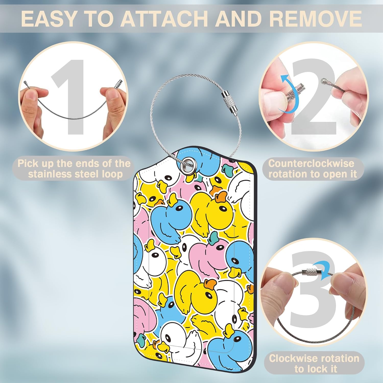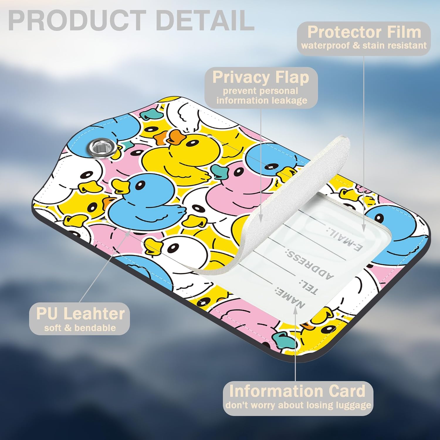 2 Pcs Cute Duck Luggage Tags for Suitcases PU Leather Baggage Tags Name ID Label with Privacy Cover and Stainless Steel Loop for Men Women Travel Bag Suitcase