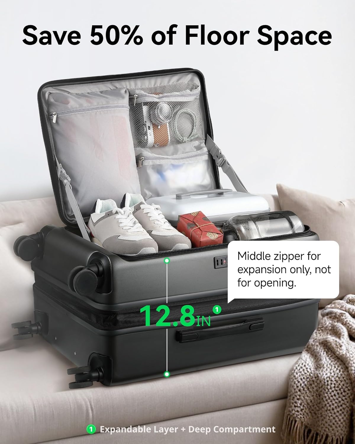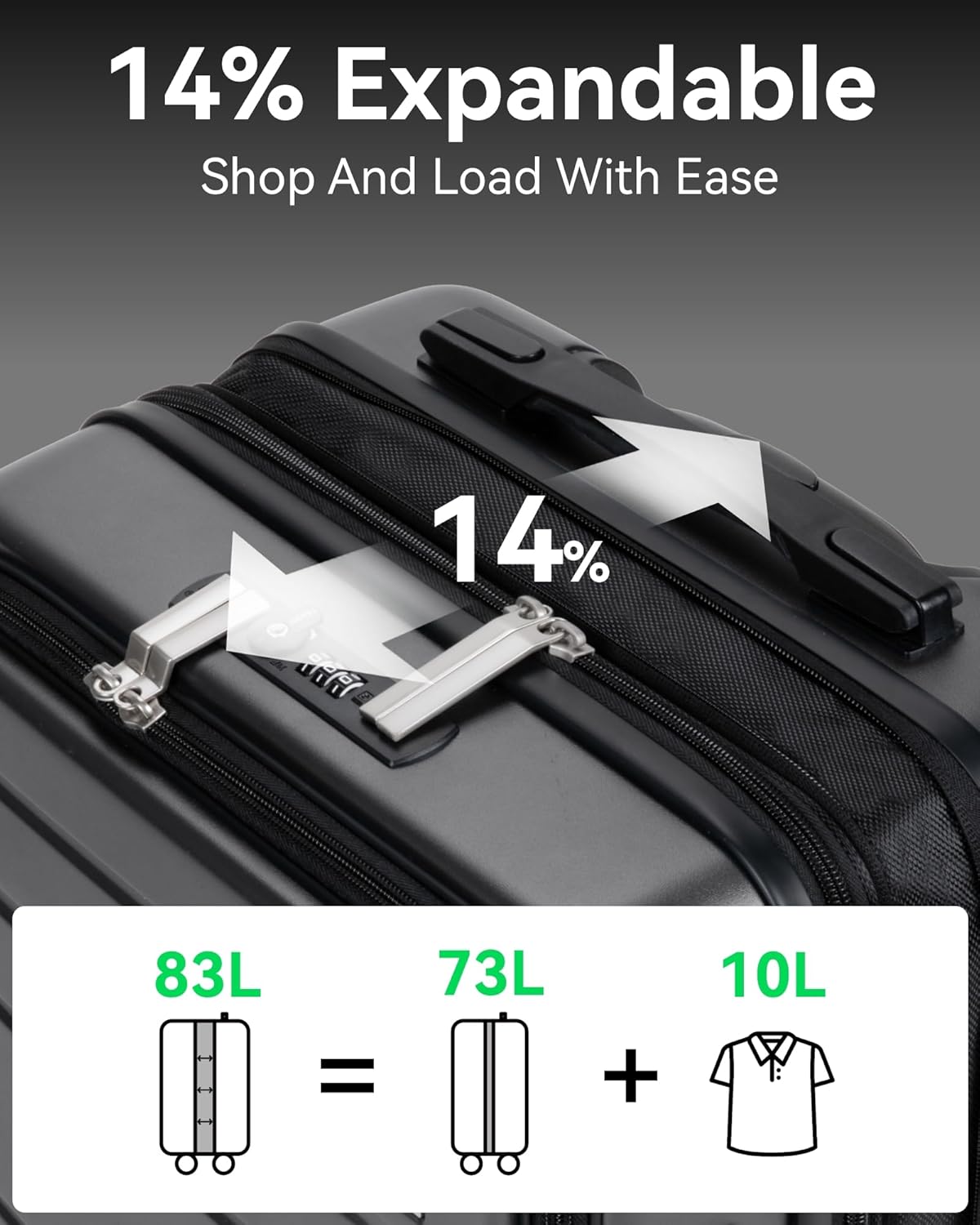 - Expandable Storage: Our travel luggage features a zipper-released expansion mechanism and adding 14% extra space. Pack efficiently and enjoy greater flexibility during your travels, whether it's for shopping or souvenirs.