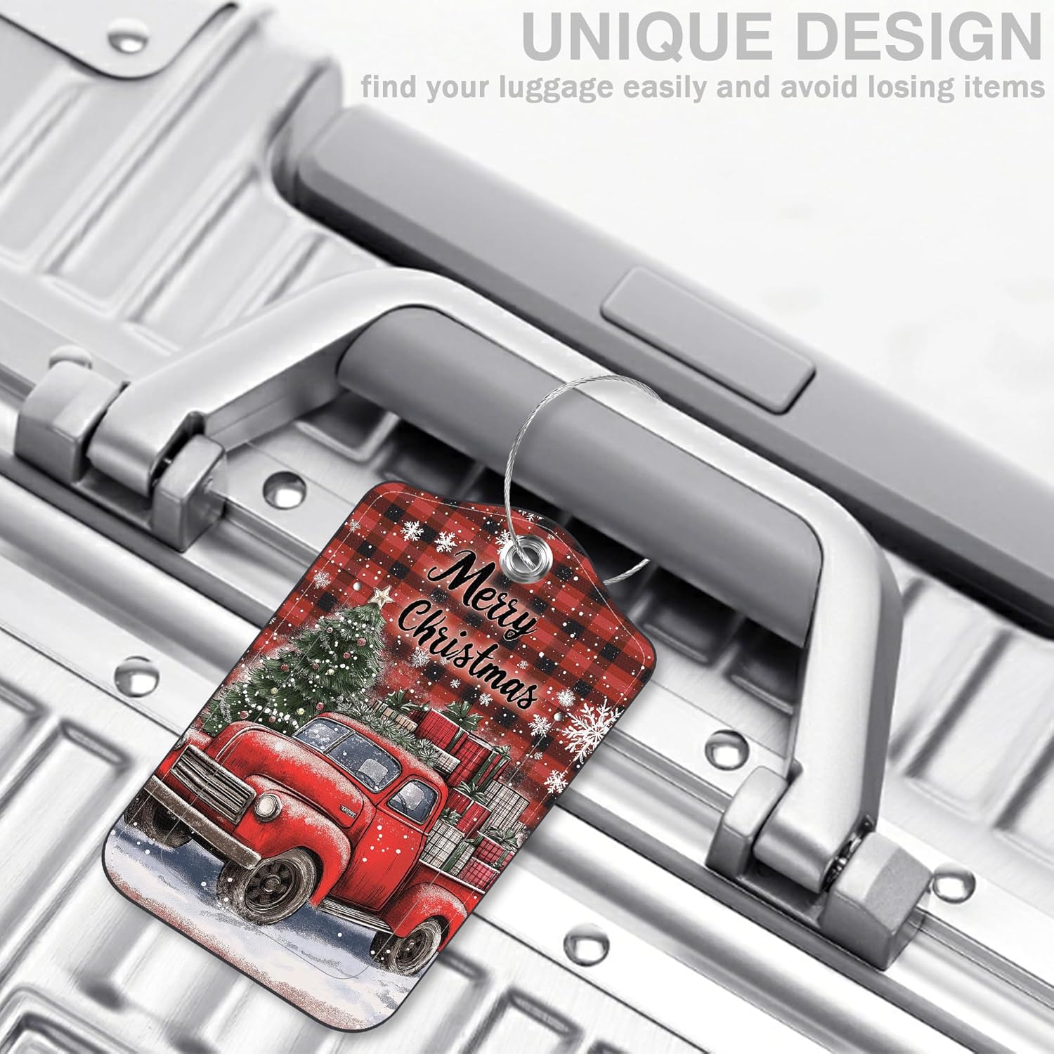 2 Pcs Red and Black Checkered Christmas Tree Luggage Tags for Suitcases PU Leather Truck Baggage Tags Name ID Label with Privacy Cover and Stainless Steel Loop for Men Women Travel Bag Suitcase