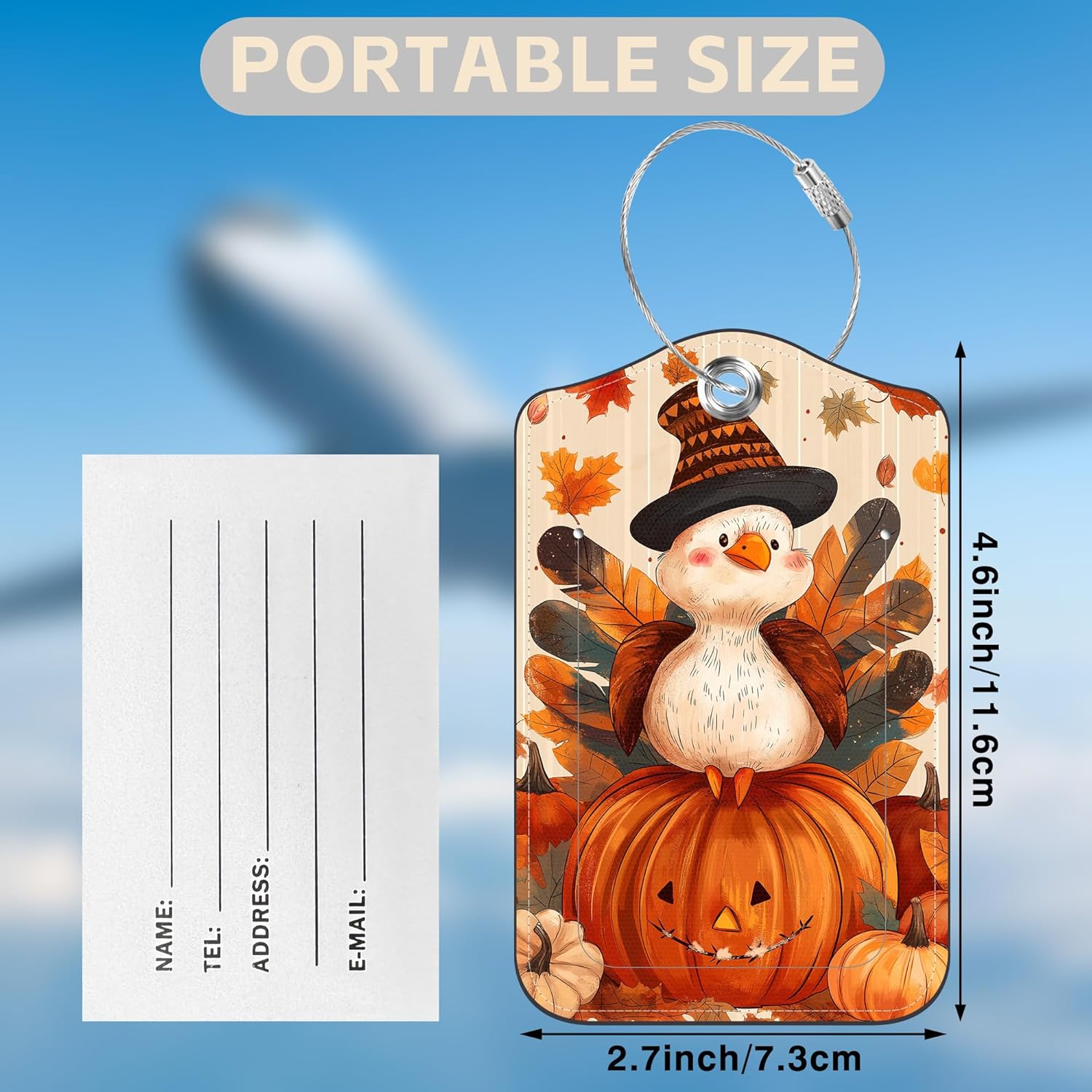 2 Pcs Cartoon Turkey and Pumpkin Luggage Tags for Suitcases Autumn PU Leather Baggage Tags Name ID Label with Privacy Cover and Stainless Steel Loop for Men Women Travel Bag Suitcase