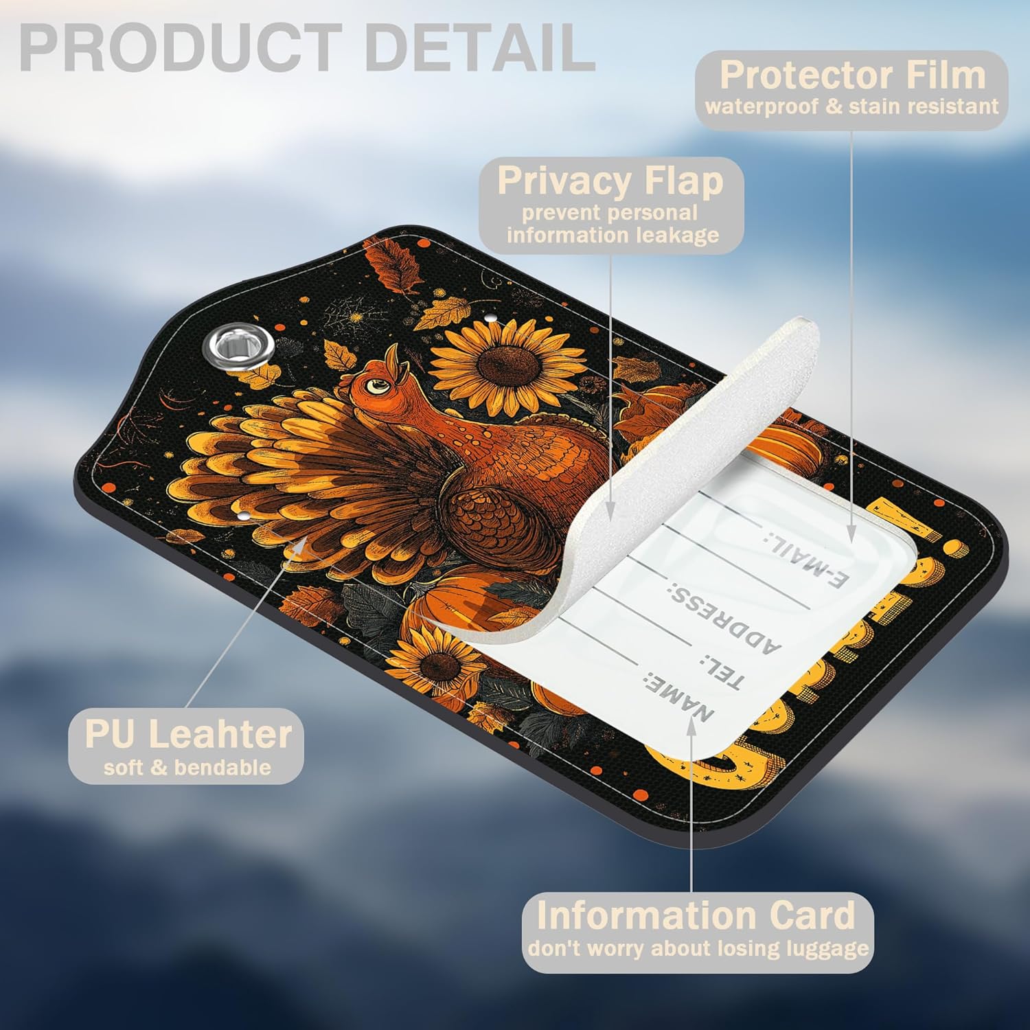 2 Pack Pumpkin and Sunflower Luggage Tags for Suitcases Autumn Turkey Leather Luggage Tags Privacy Cover ID Label with Stainless Steel Loop and Address Card for Women Men Travel Bag Backpack