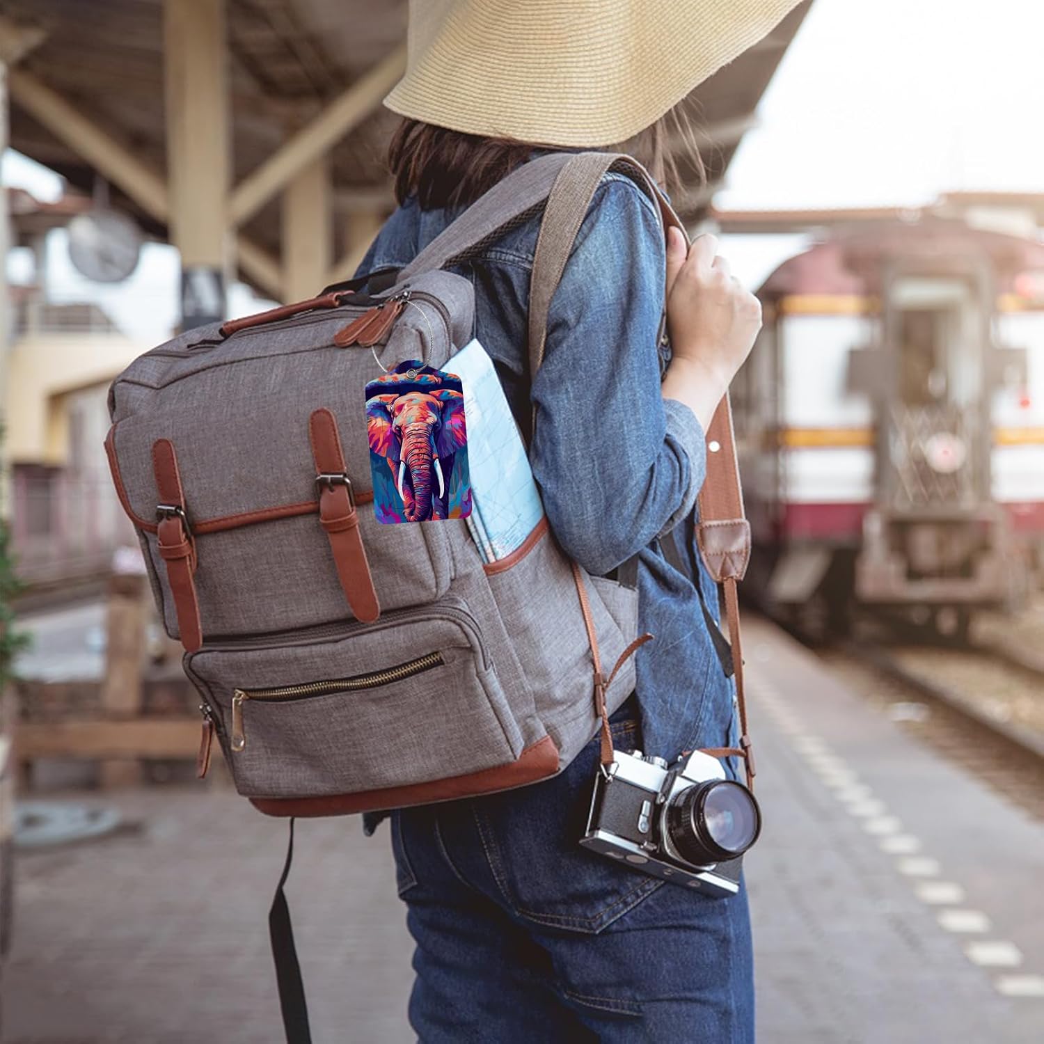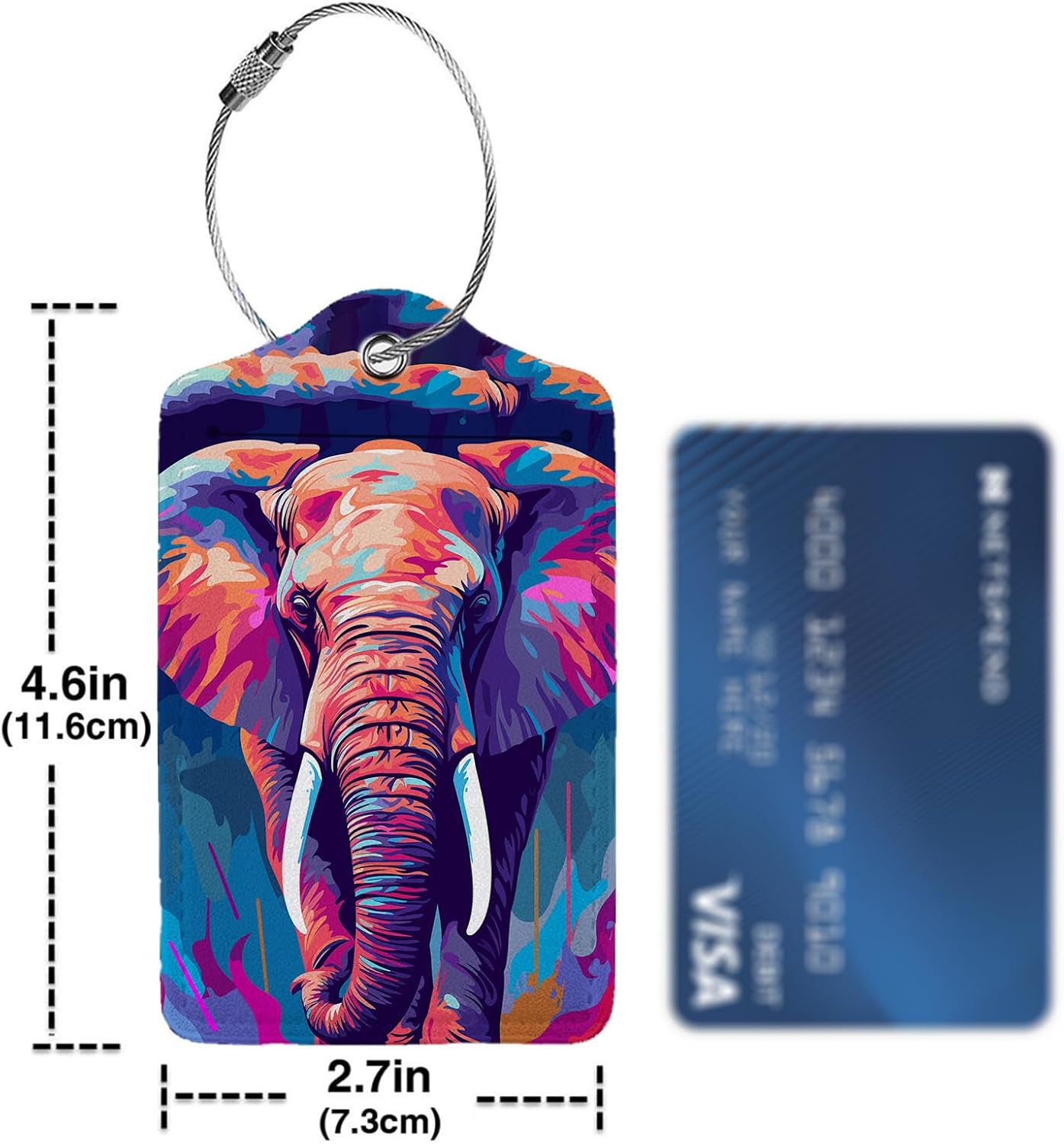 Colorful Elephant 2 Pcs Luggage Tags,Privacy Cover ID Label with Stainless Steel Loop and Address Card for Travel Bag Suitcase