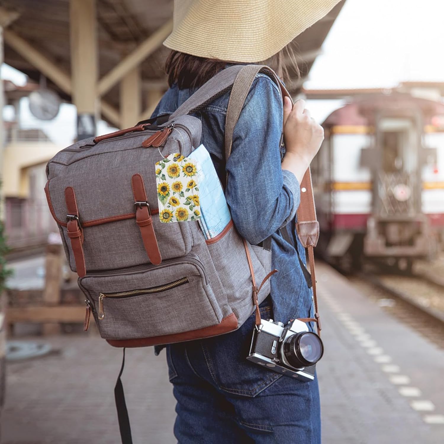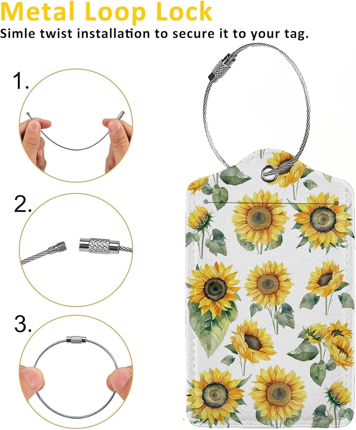 Watercolor Floral Sunflowers 2-Pack Luggage Tags for Suitcases,Leather Baggage Tag with Loop, Tags Private Name ID Labels for Women Girl Men Boys Travel Baggage Suitcase