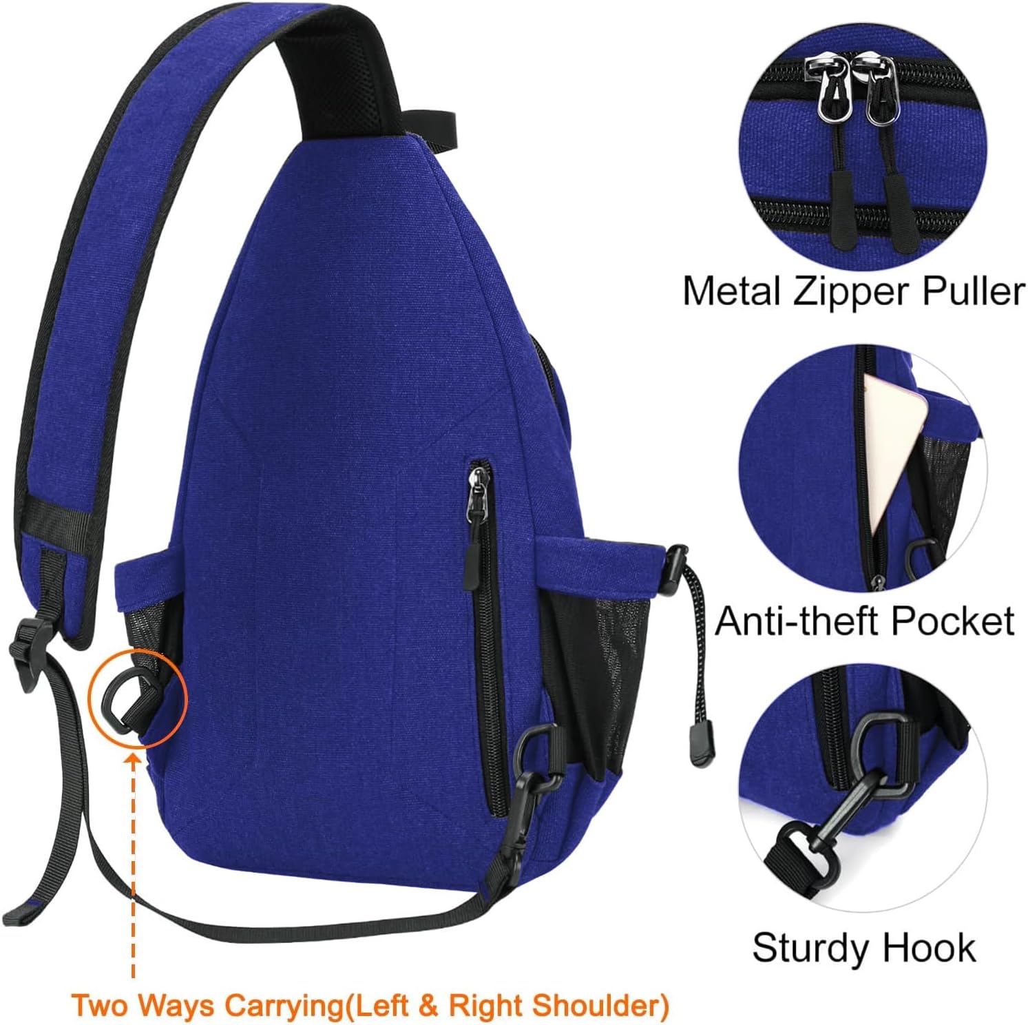 MOSISO Sling Backpack,Canvas Crossbody Hiking Daypack Bag with Anti-theft Pocket, Royal Blue