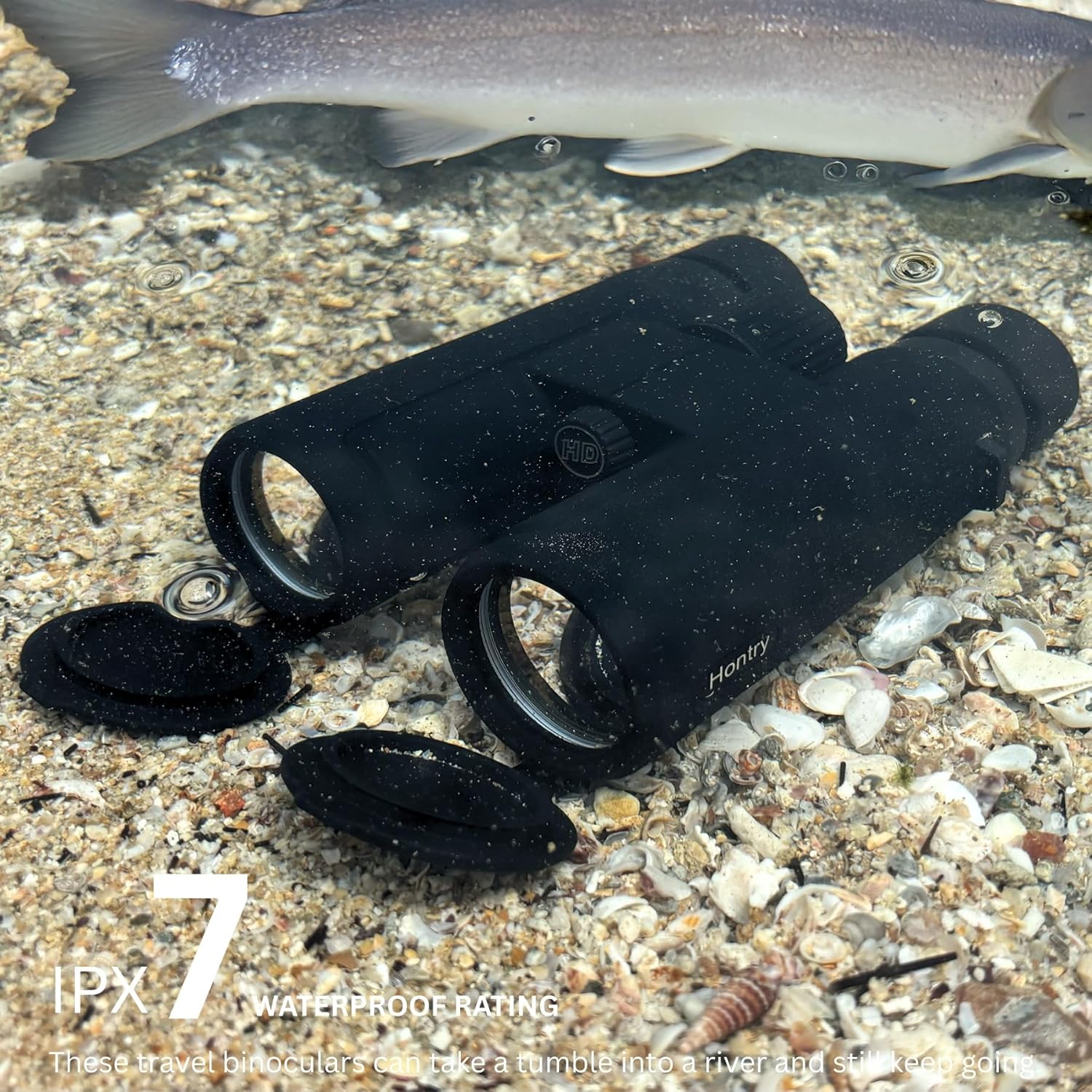 - Designed with a floating body, these waterproof binoculars stay on the surface if dropped in water and can be used immediately without drying.