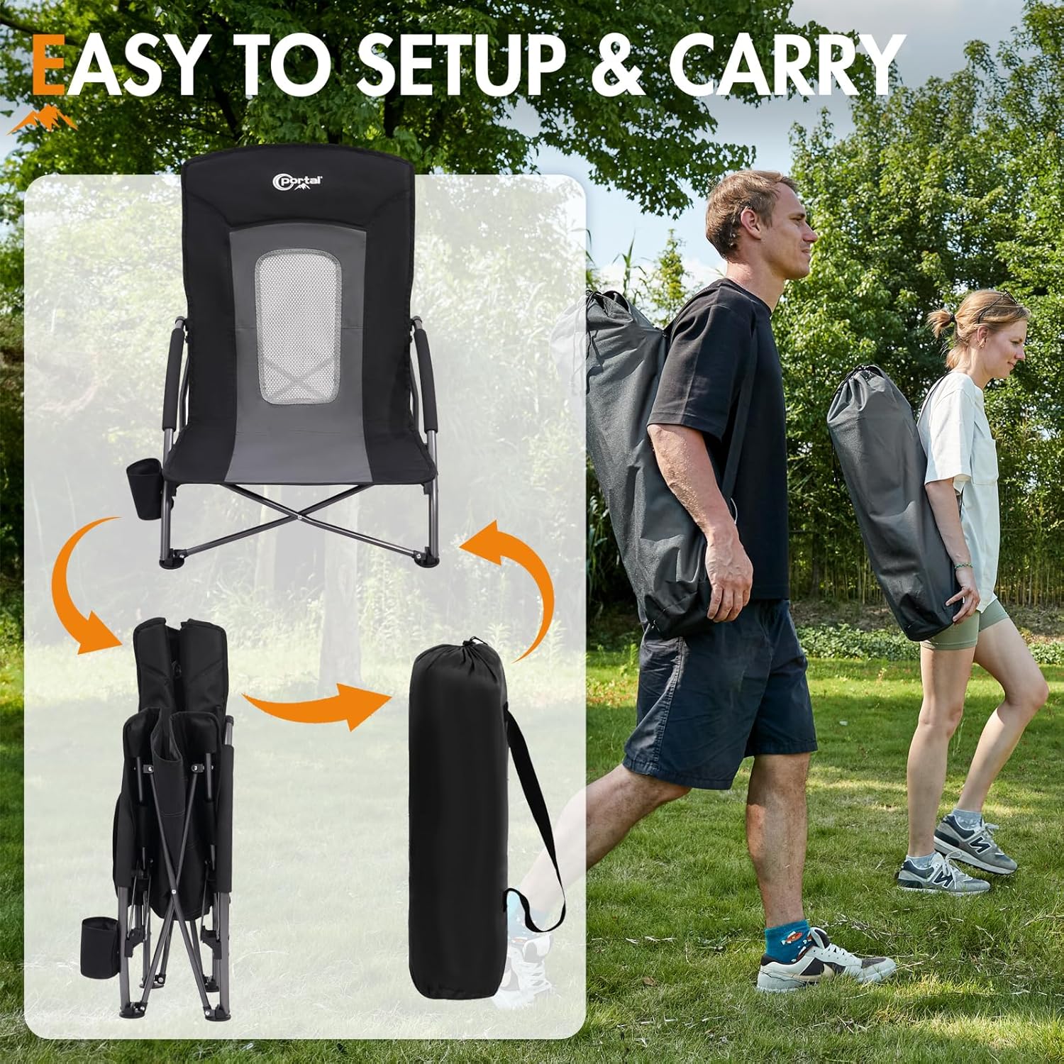 PORTAL Beach Chairs for Adults Camping Low Lightweight Portable Chair with Cup Holder Mesh Back Carry Bag for Outdoor Sand Lawn Travel Picnic Festival Concert, 350LBS