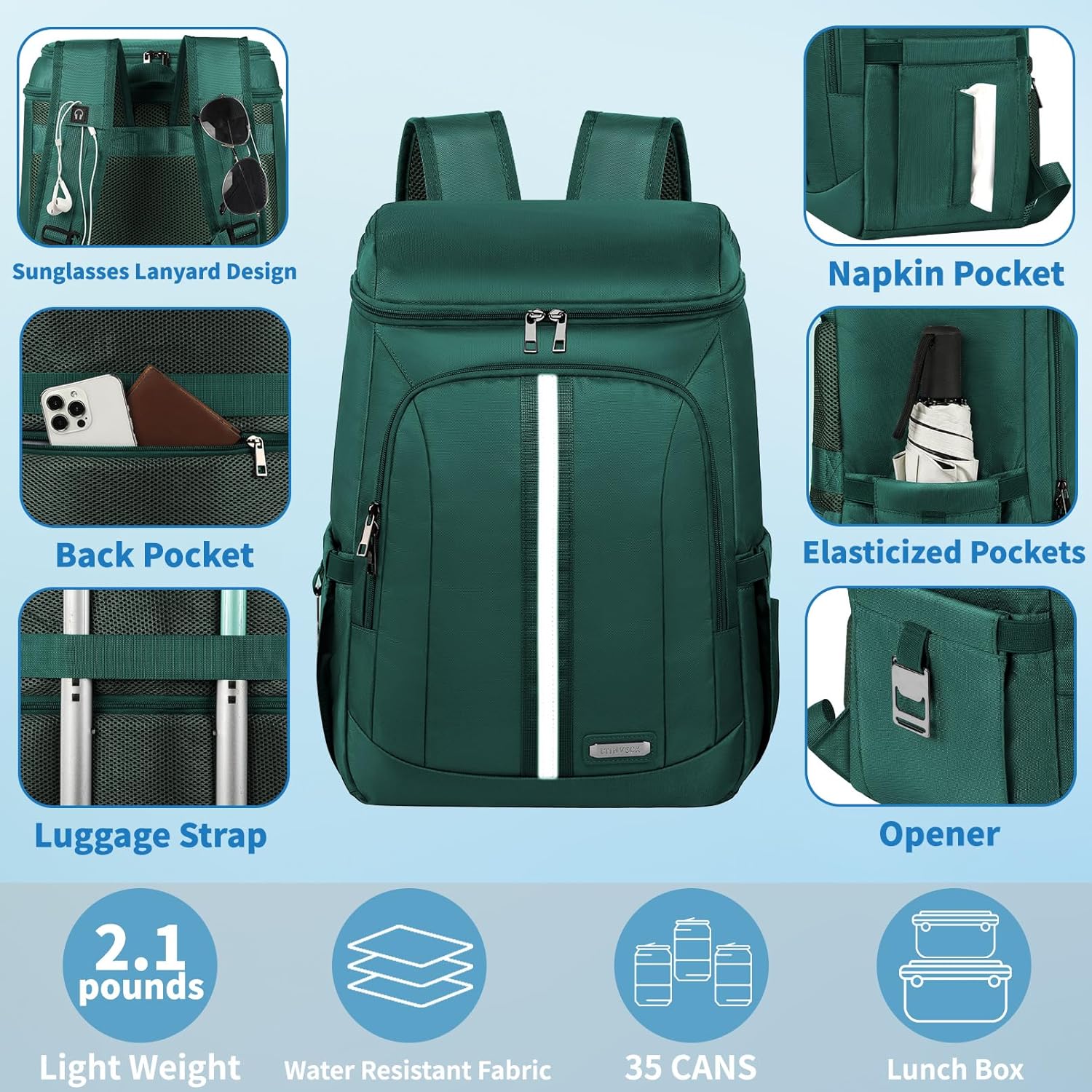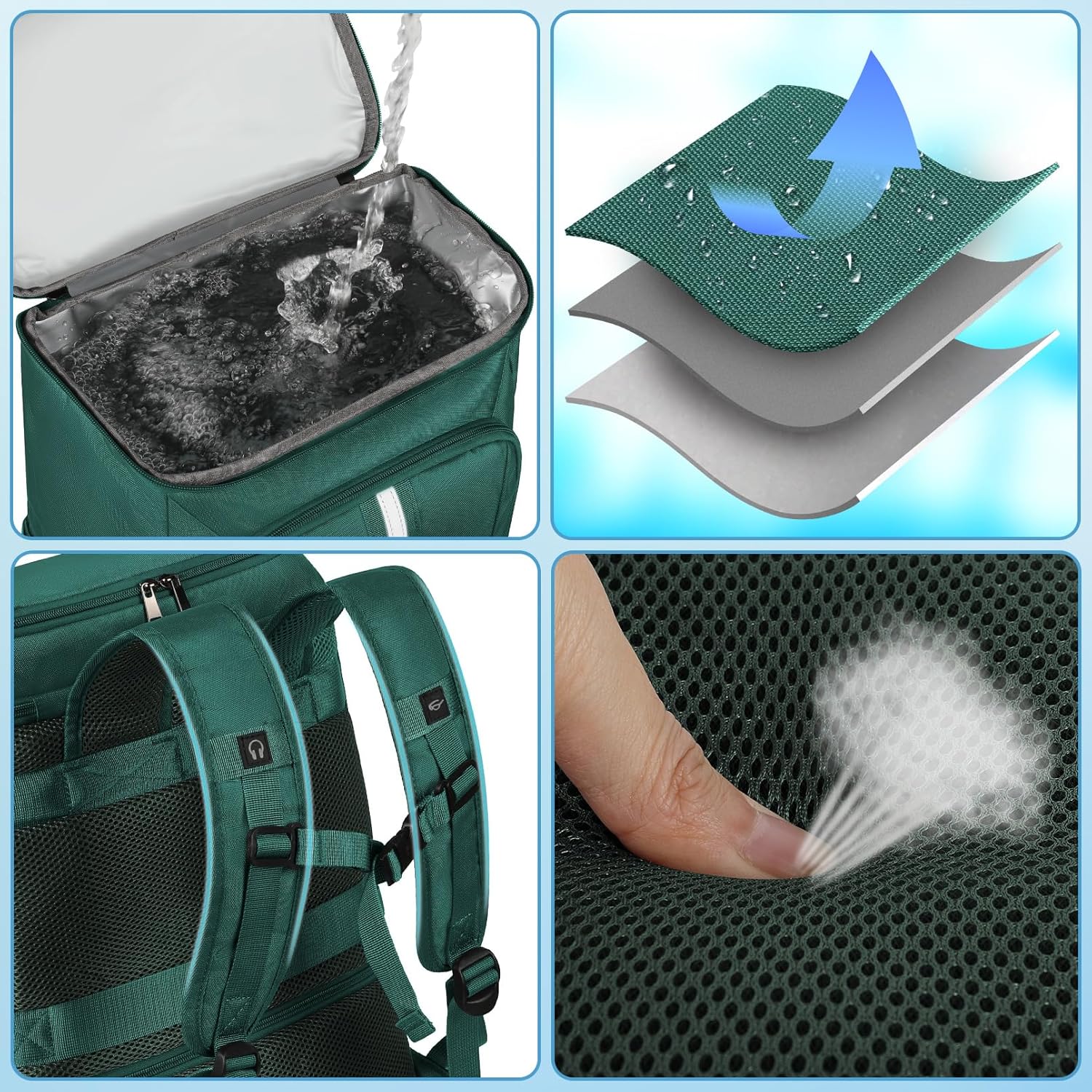 Backpack Cooler Insulated Leak Proof 35 Cans, 2 Insulated Compartments Thermal Bag, Portable Lightweight Beach Travel Camping Lunch Backpack for Men and Women, 30L, Reflective Stripes, Water-Resistant