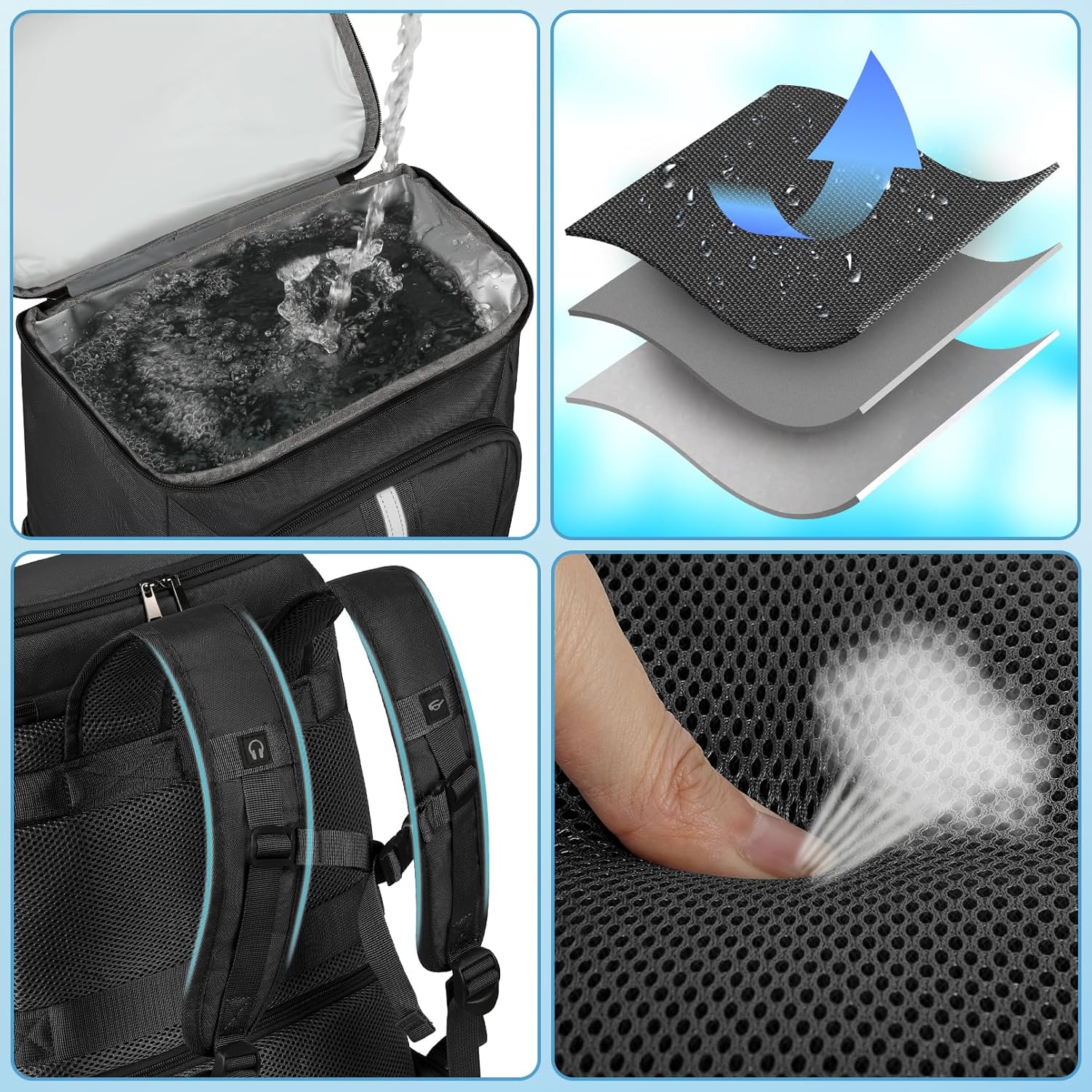 Backpack Cooler Insulated Leak Proof 35 Cans, 2 Insulated Compartments Thermal Bag, Portable Lightweight Beach Travel Camping Lunch Backpack for Men and Women, 30L, Reflective Stripes, Water-Resistant