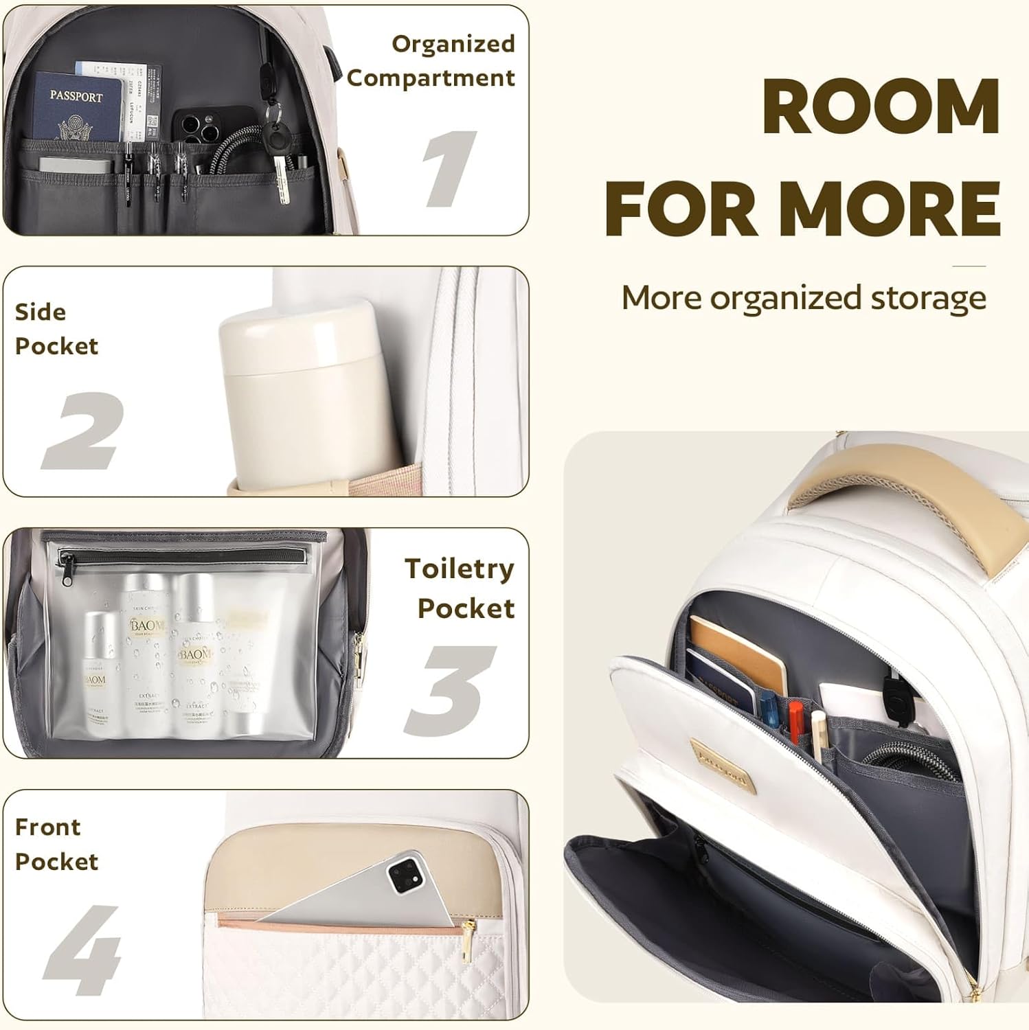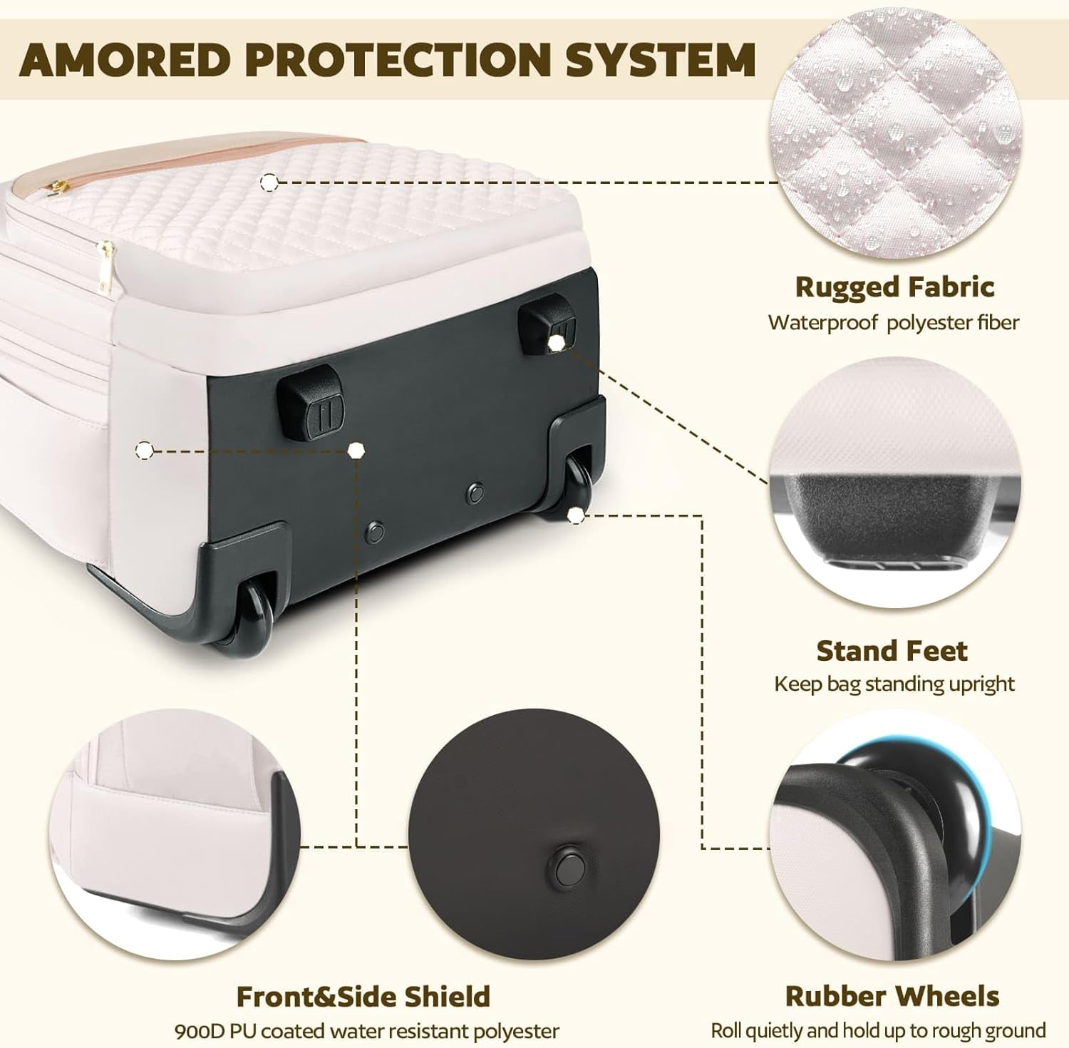 Small Rolling Backpack, Underseat Carry On Luggage With Wheels For Adults, 15.6 Inch Wheeled Backpack for Women, Travel Roller Bag, Beige