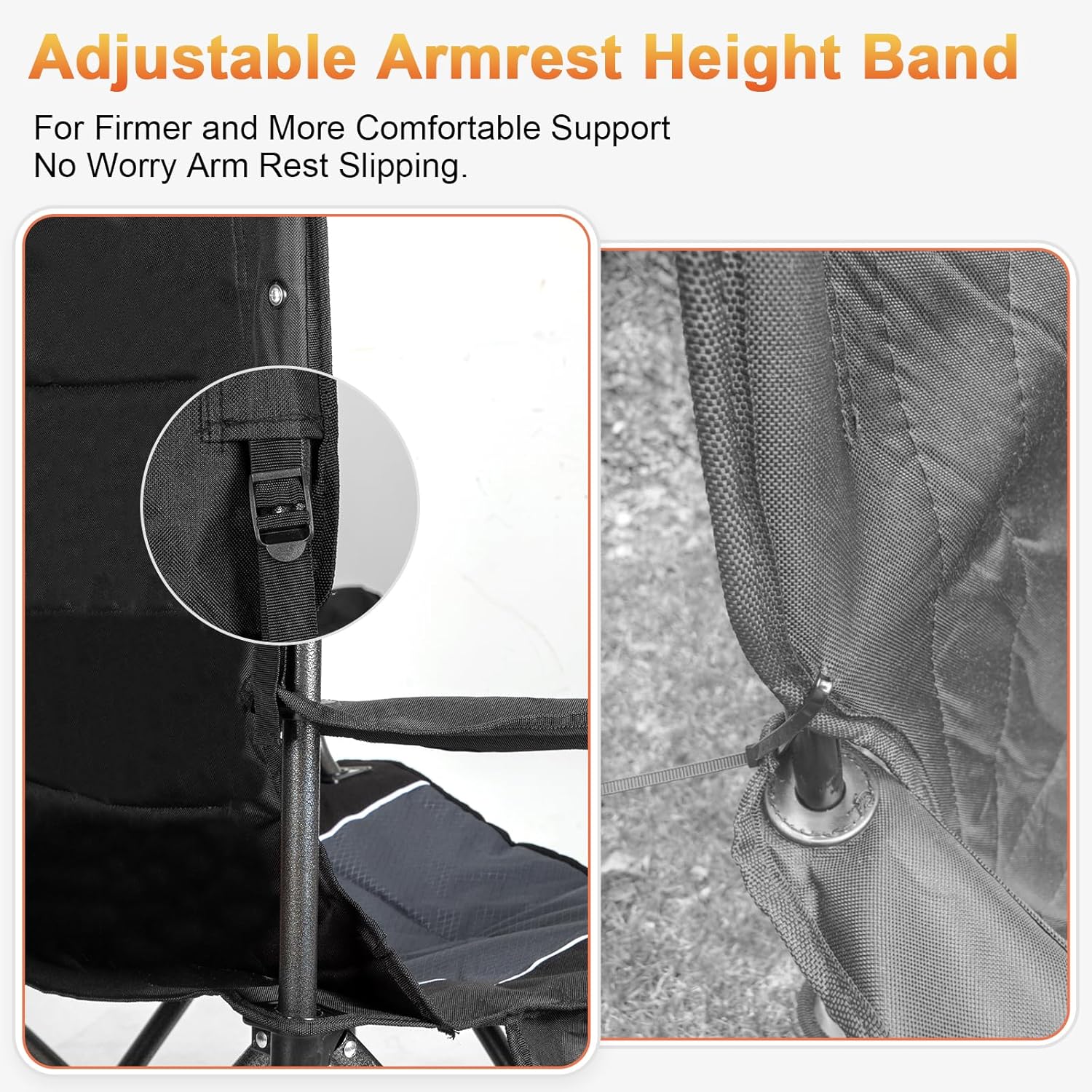 - 100% Oxford Fabric:Our large outdoor folding chair is crafted from a double-layer, rip-resistant 600D Oxford fabric and features a sponge cushion, ergonomic padded high back and armrests ensuring both durability, breathability and comfort
