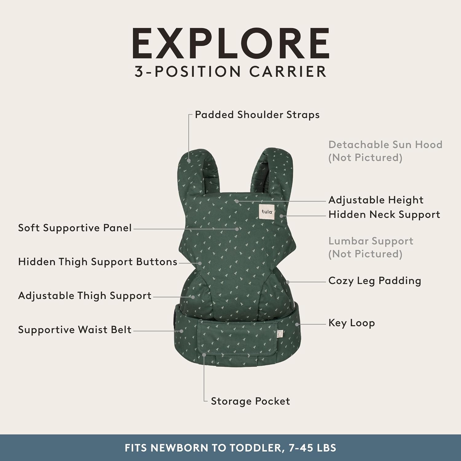 Baby Tula Explore Carriers - Breathable Baby Carrier Newborn to Toddler - Adjustable Toddler Carrier - Multiple Ergonomic Positions Front and Back - Ergonomic Fit for 7-45 lb - Cotton, Seedling