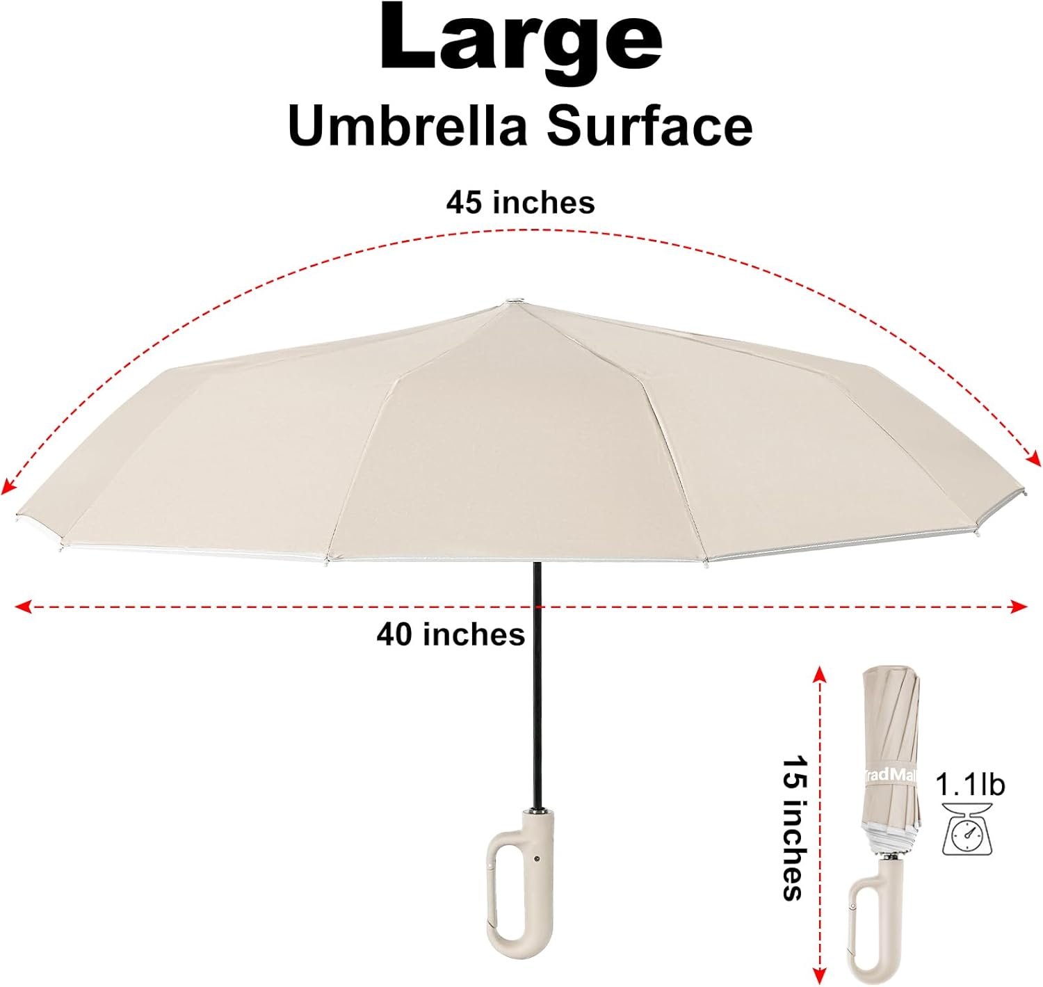 - COMFORTABLE CARABINER HANDLE: The handle makes it easy to hold, and makes a convenient place to hang the umbrella; You can easily hang it on your backpack, door knob, wall hook or other places