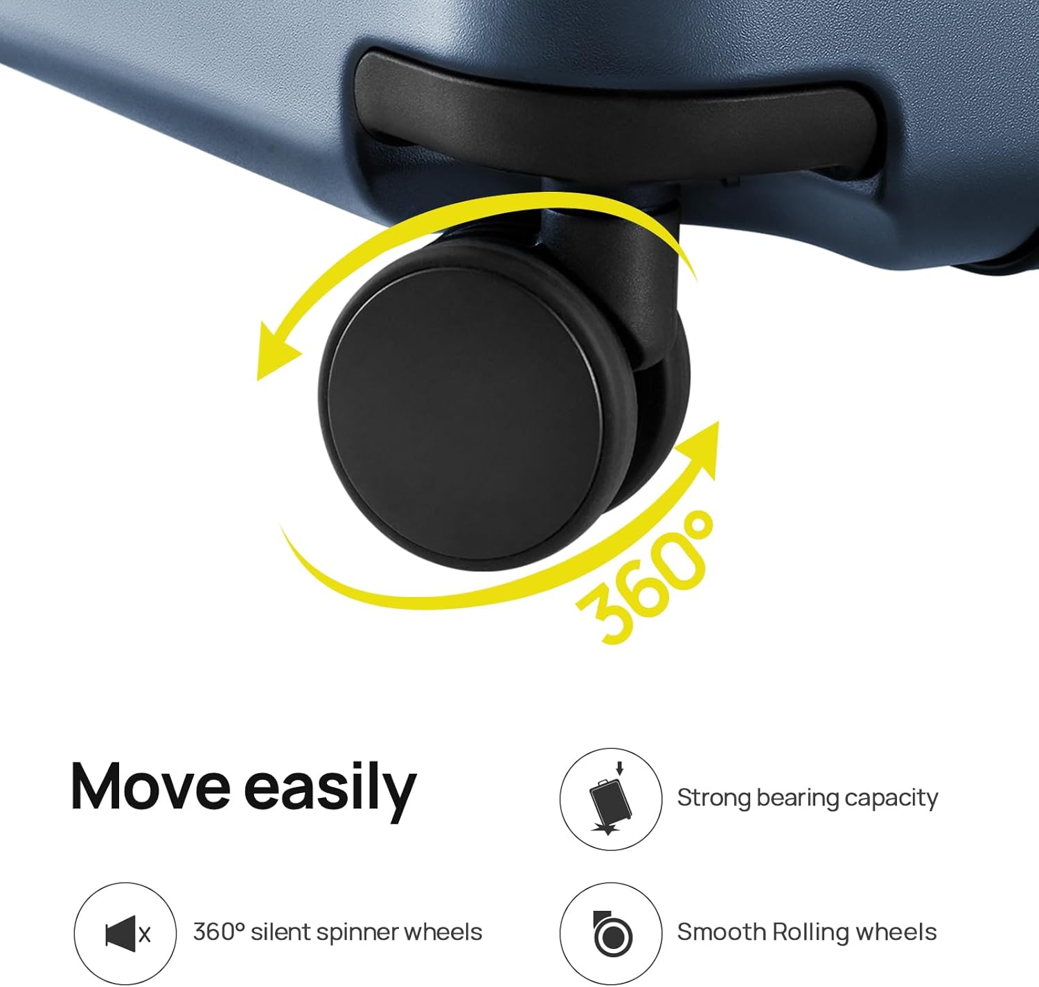 - DOUBLE SPINNER 360 WHEELS: this 22 inch carry on luggage comes with 4 silent wheels, giving you a super-smooth and quiet ride with 360 spin.