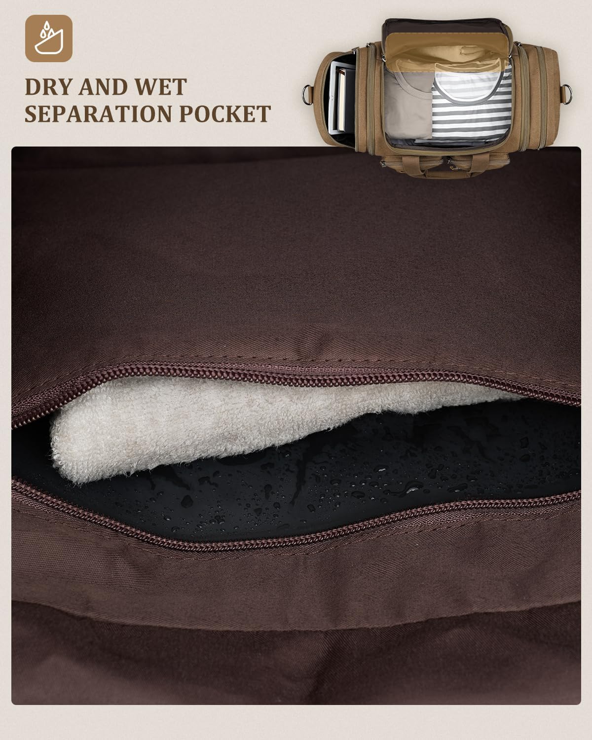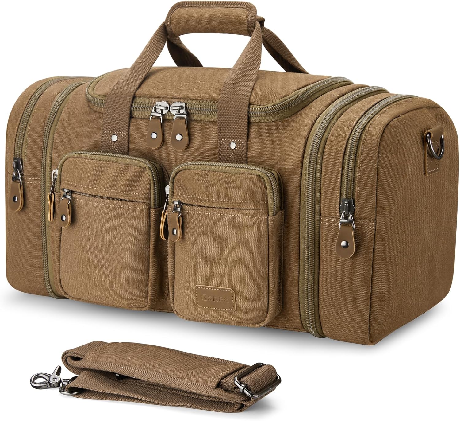Gonex Canvas Duffle Bag for Travel, Expandable Water Resistant 50L Carry on Duffel Overnight Weekender Gym Bag with Wet Dry Separation Pocket & Suitcase Handle Sleeve,Coffee