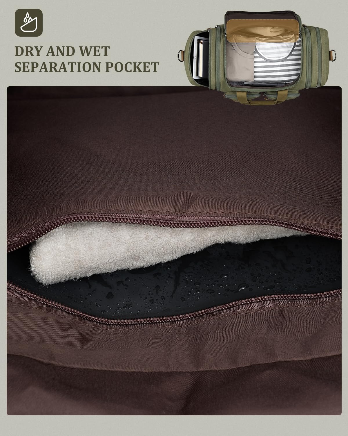 Gonex Canvas Duffle Bag for Travel, Expandable Water Resistant 50L Carry on Duffel Overnight Weekender Gym Bag with Wet Dry Separation Pocket & Suitcase Handle Sleeve, Army Green
