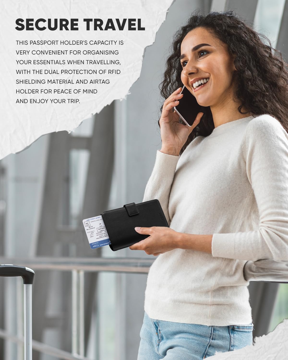 - Passport & Airtag Holder Combo Design- The built-in holder compatible with airtag to locate your passport while travelling. Keep track of your passport book cover wherever you go and never worry about forgetting where you left it.