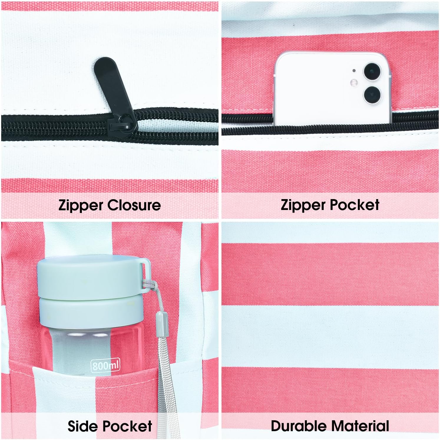 - Zipper Closure & Soft Strap: This Lightweight and foldable tote bag is easy to clean and store. It features a top zipper closure, well- designed shoulder strap comfortable to carry, 2 side bottle pockets, and 1 inside zipper pocket