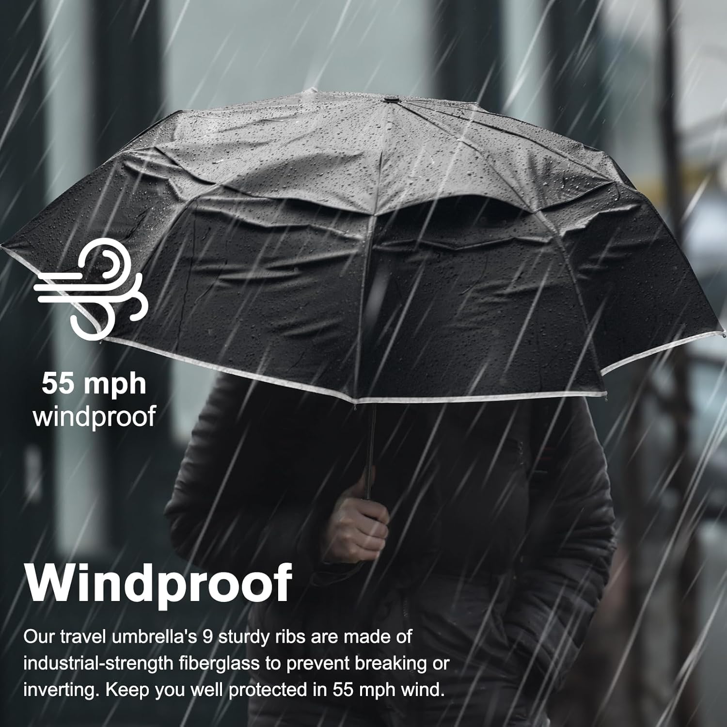 - STRONG WINDPROOF UMBRELLA: 9 strong reinforced fiberglass ribs can withstand even in bad weather and will not break after being flipped over by a storm. With its 190T high-density double canopy construction creating an ultra-resilient windproof shield, this umbrella stands strong against 55mph gusts
