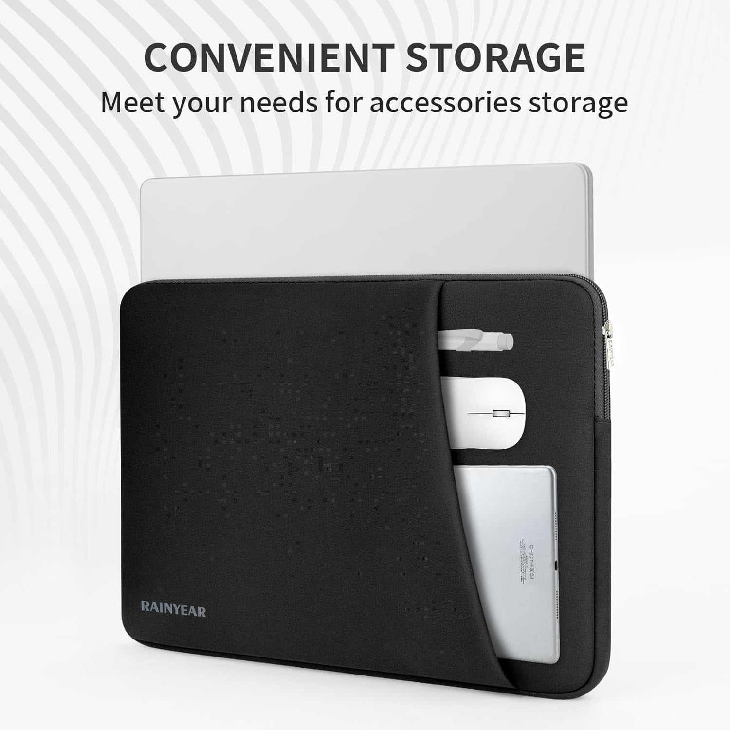RAINYEAR Laptop Sleeve Case with Front Pocket, 11-13 Inch Protective Portable Case with Front Pocket, Briefcase Laptop Bag Cover Compatible with MacBook Air/Pro, HP, Dell, Lenovo, Acer, Black