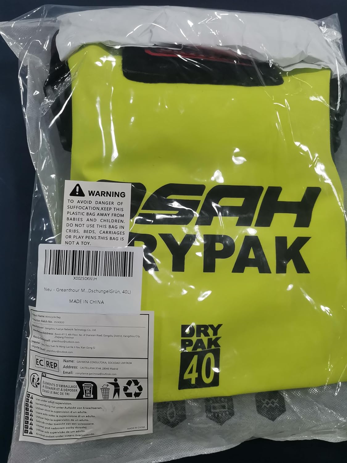- CAPACITY MEETS DEMAND: This motorcycle tail bag comes in three sizes: 25 liters, 40 liters, and 60 liters, providing you with spacious storage space;Equipped with MOLLE connection points for hanging keychains and water bottles, as well as stacking other bags upwards to enhance expandability; There is an air valve on the outside, which maximizes the capacity by releasing excess air inside the bag