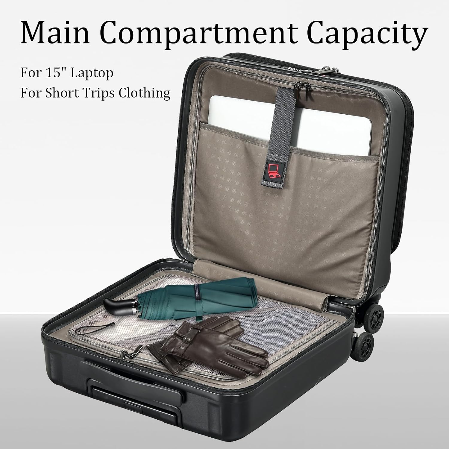 16 Inch Carry On Luggage with 2 Compartments for 14” & 15” Laptop, 16.14*8*17.12” Rolling Briefcase, Lightweight Hardshell ABS+PC Suitcase with Spinner Silent Wheels, for Business Trip, Black