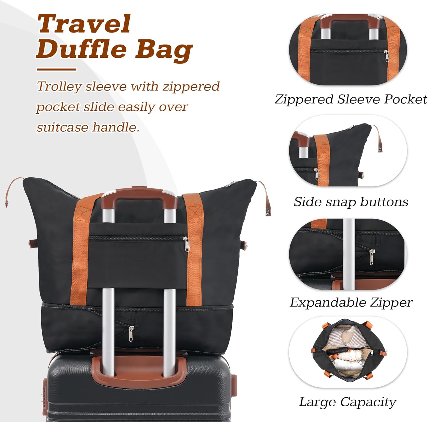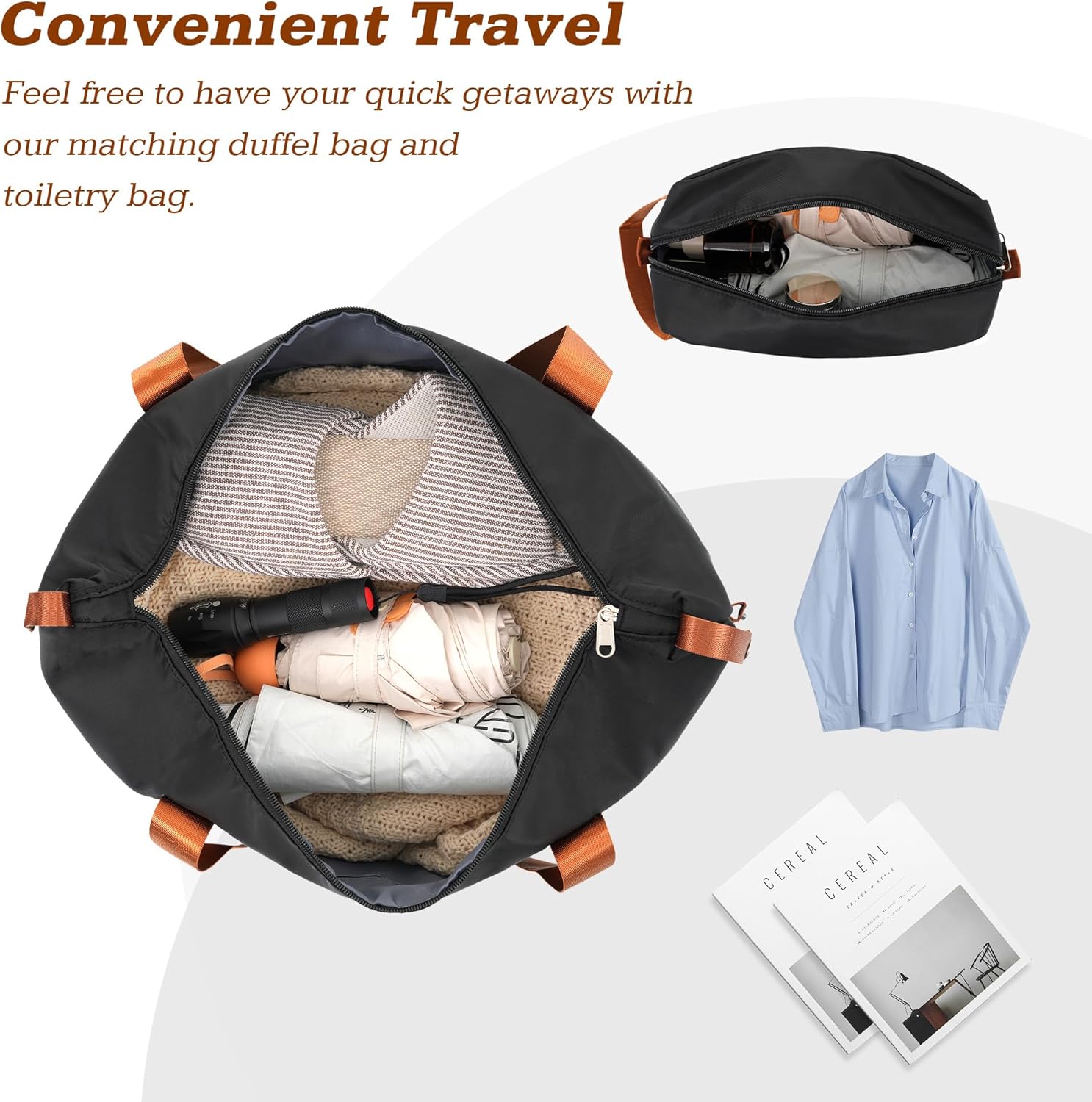 - Luggage set includes a 28-inch suitcase, a travel duffel bag, and a toiletry bag. The duffel bag has trolley sleeve with zippered pocket to pack your travel essentials, you can conveniently attach them to the adjustable suitcase handle to meet your needs.