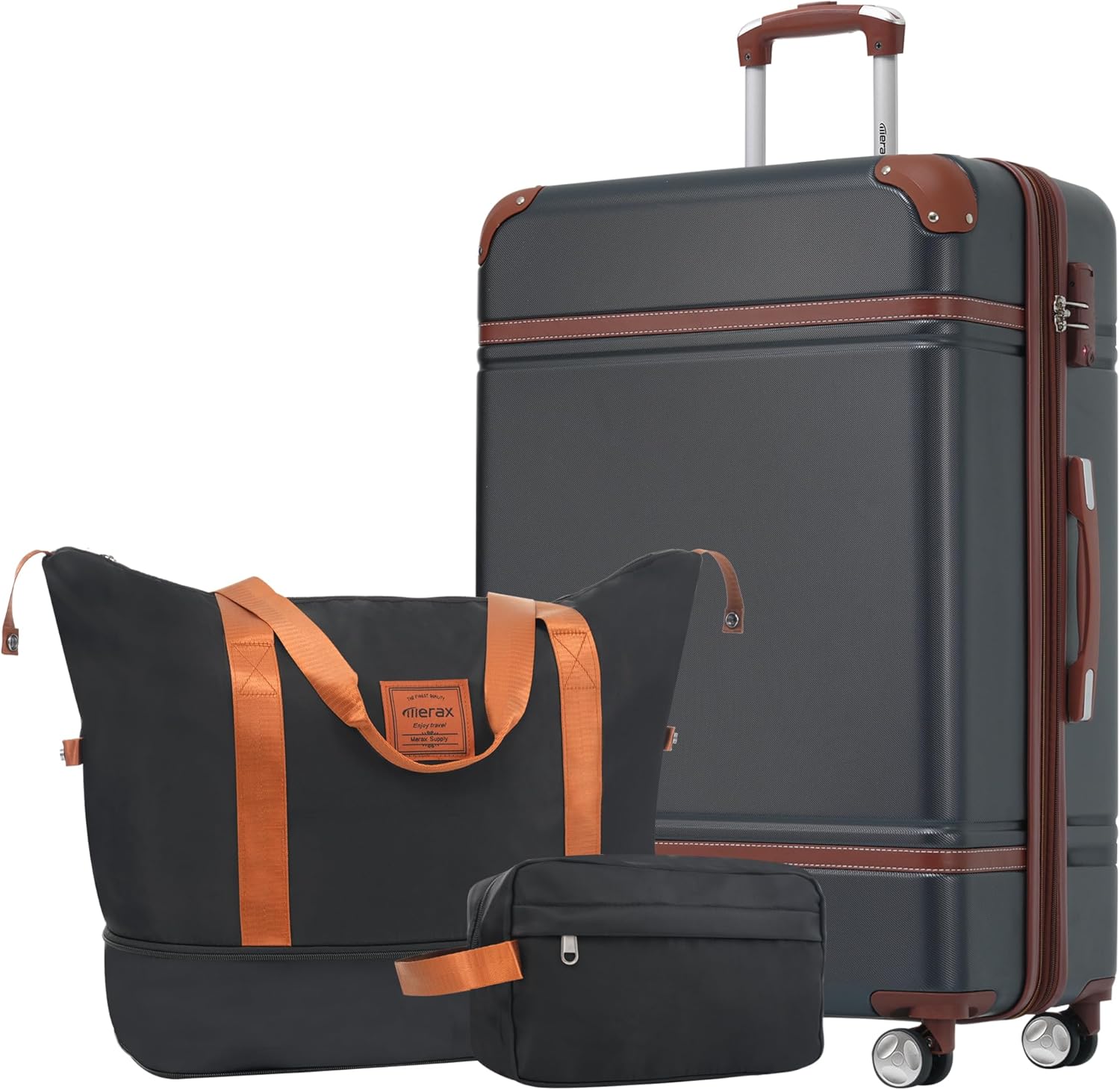 Merax Suitcase Set 28 inches Expandable Luggage with TSA Lock Spinner Wheels Hardshell Lightweight Vintage Luggage with Travel Bag,Black