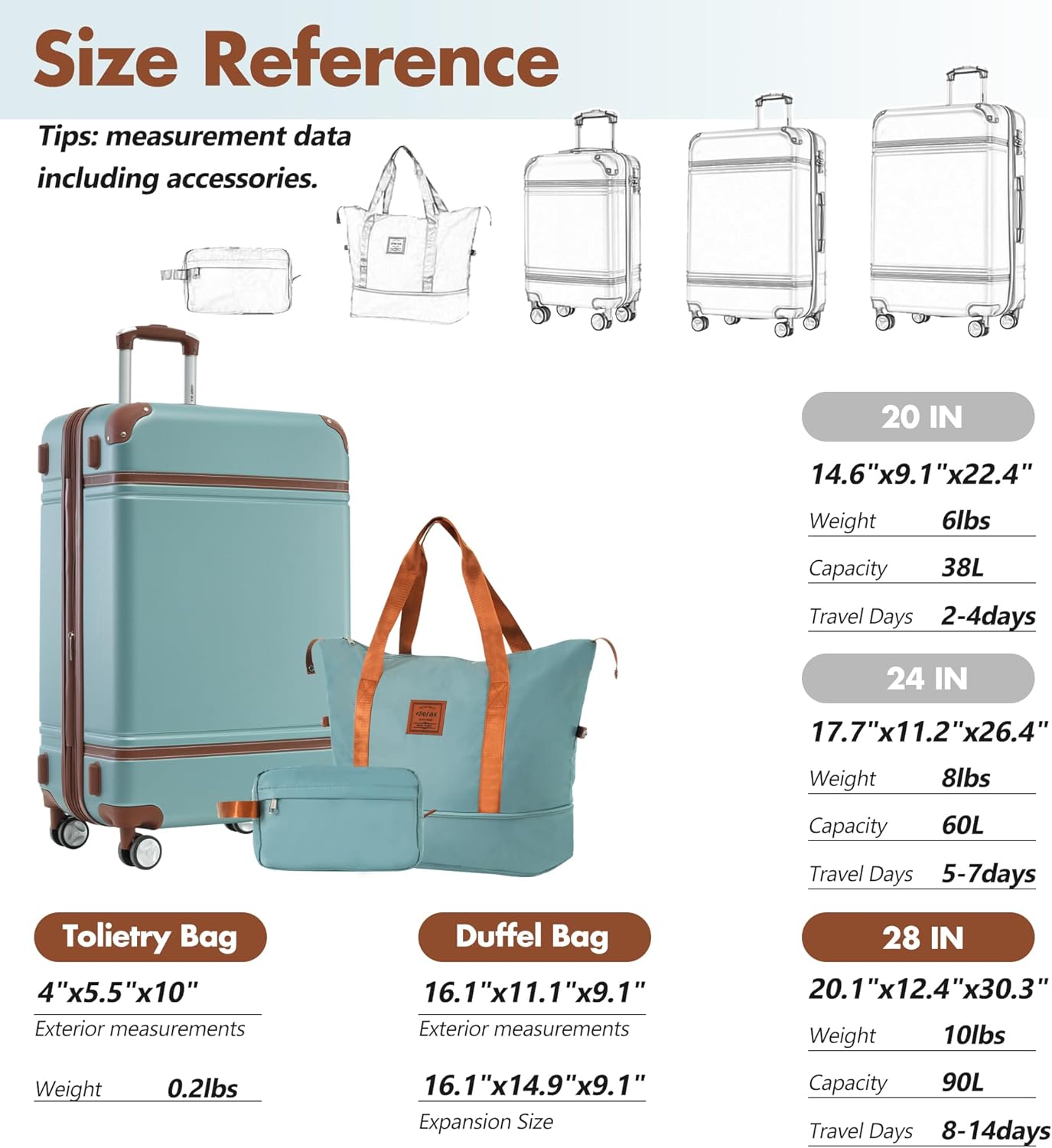 Merax Suitcase Set 28 inches Expandable Luggage with TSA Lock Spinner Wheels Hardshell Lightweight Vintage Luggage with Travel Bag,Green