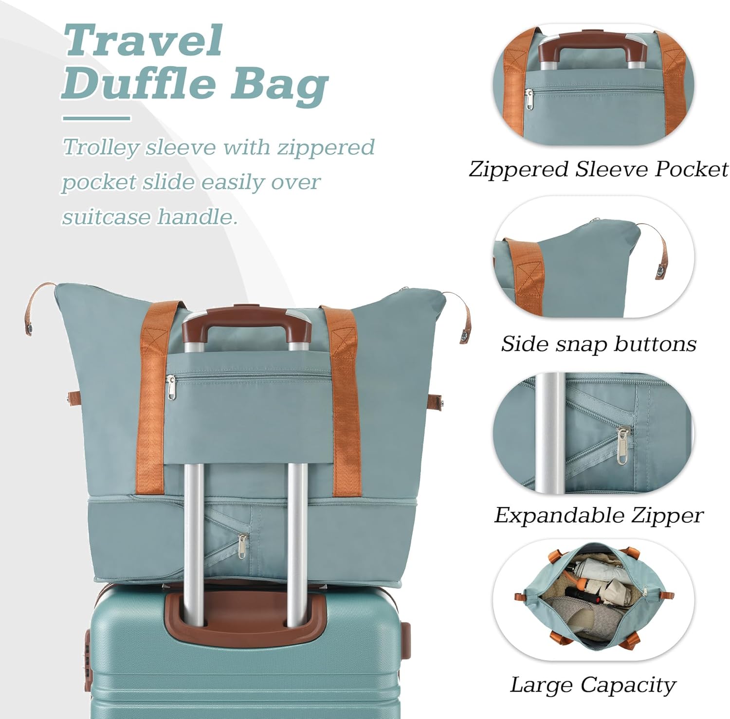 - Luggage set includes a 28-inch suitcase, a travel duffel bag, and a toiletry bag. The duffel bag has trolley sleeve with zippered pocket to pack your travel essentials, you can conveniently attach them to the adjustable suitcase handle to meet your needs.