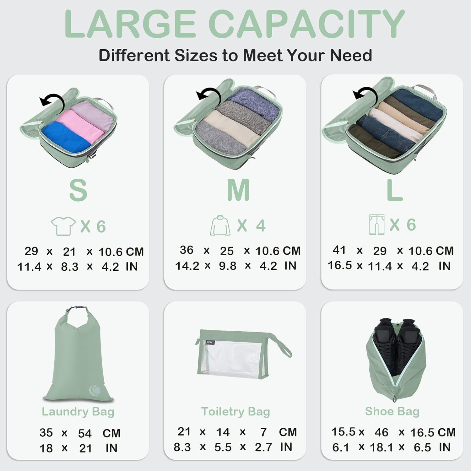 Cipway Compression Packing Cubes, Lightweight Travel Luggage Organizers with Shoe, Toiletry & Laundry Bags, Travel Essentials for Carry-on Suitcase (8 Piece, Sage Green)