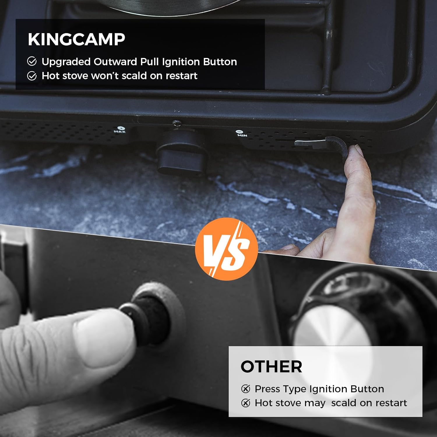 KingCamp 2 Burner Camping Stove,Portable Folding Stove with 20000 BTU,Backpacking Camp Stove for Outdoor Cooking,2 Adjustable Burners & Piezo Ignition for BBQ Hiking Backpacking Camping