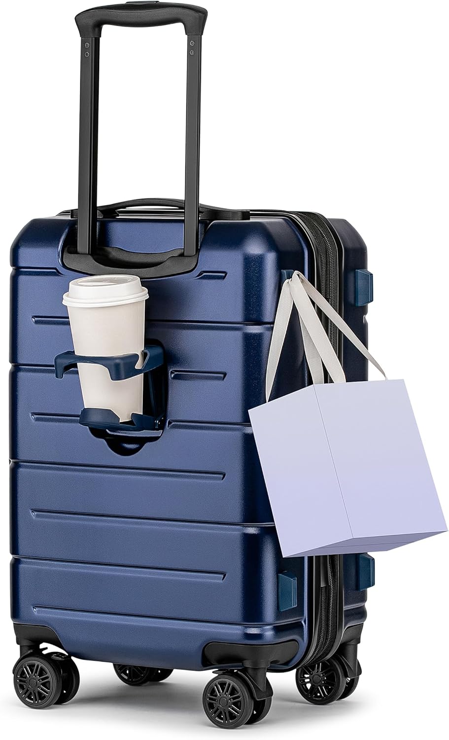 KYME Hardside Expandable Carry On Luggage 22x14x9 Airline Approved 20 Inch Hardshell Carry On Suitcase with Wheels TSA Lock Small Travel Rolling Luggage with Cup Holder for Women Men Navy