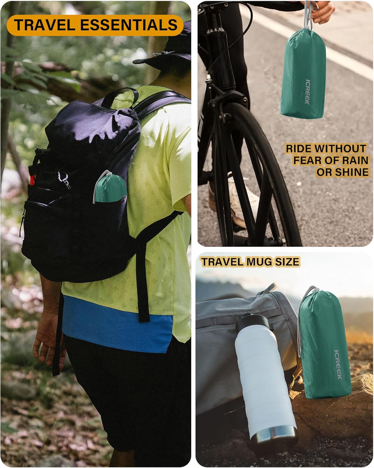 • Waterproof Fabric: iCreek rain poncho is made of nano polyester high density rhombic lattice material and combined with TPU waterproof fabric. Waterproof Rating: 8000mm. It is waterproof, windproof, soft, comfortable, tear resistant, durable, etc