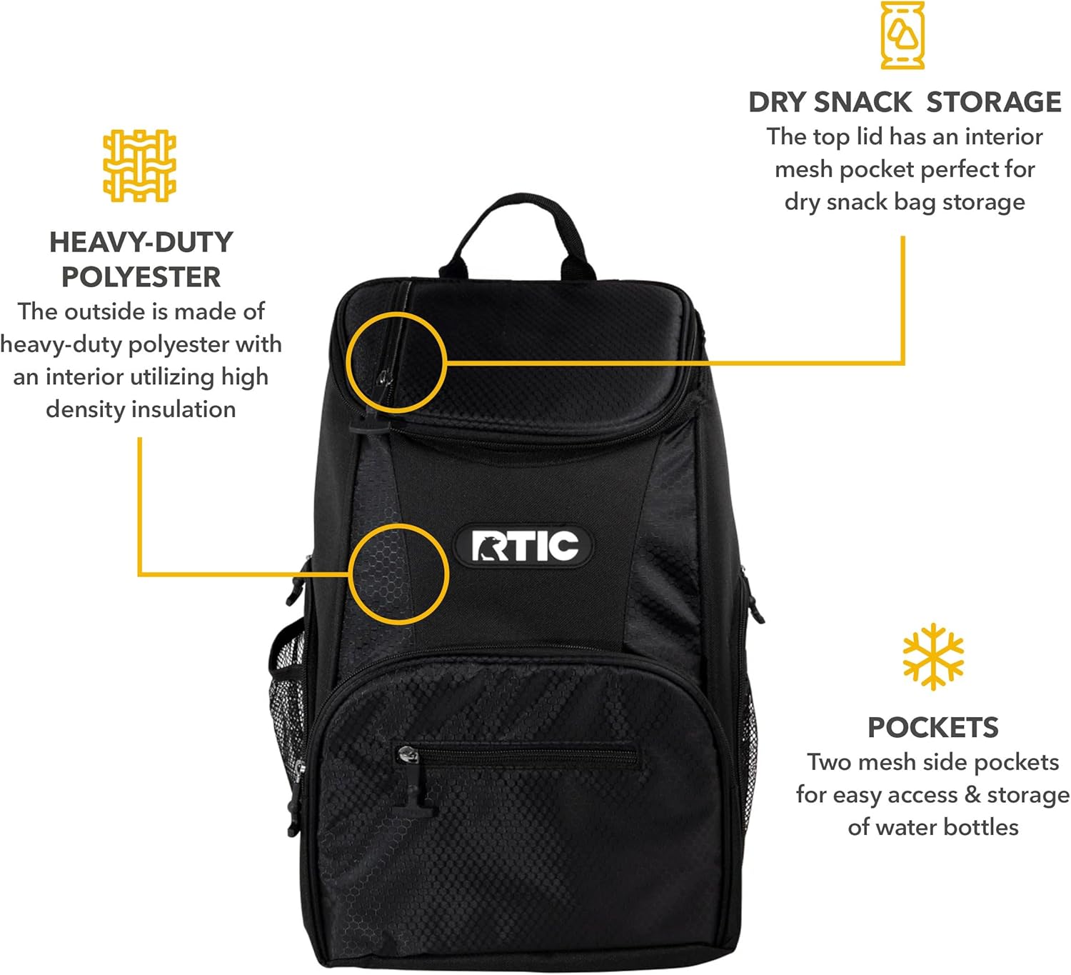RTIC 15 Can Lightweight Backpack Cooler Soft Insulated Portable Bag for Lunch, Beach, Drink, Beverage, Travel, Camping, Picnic, Car, Hiking,