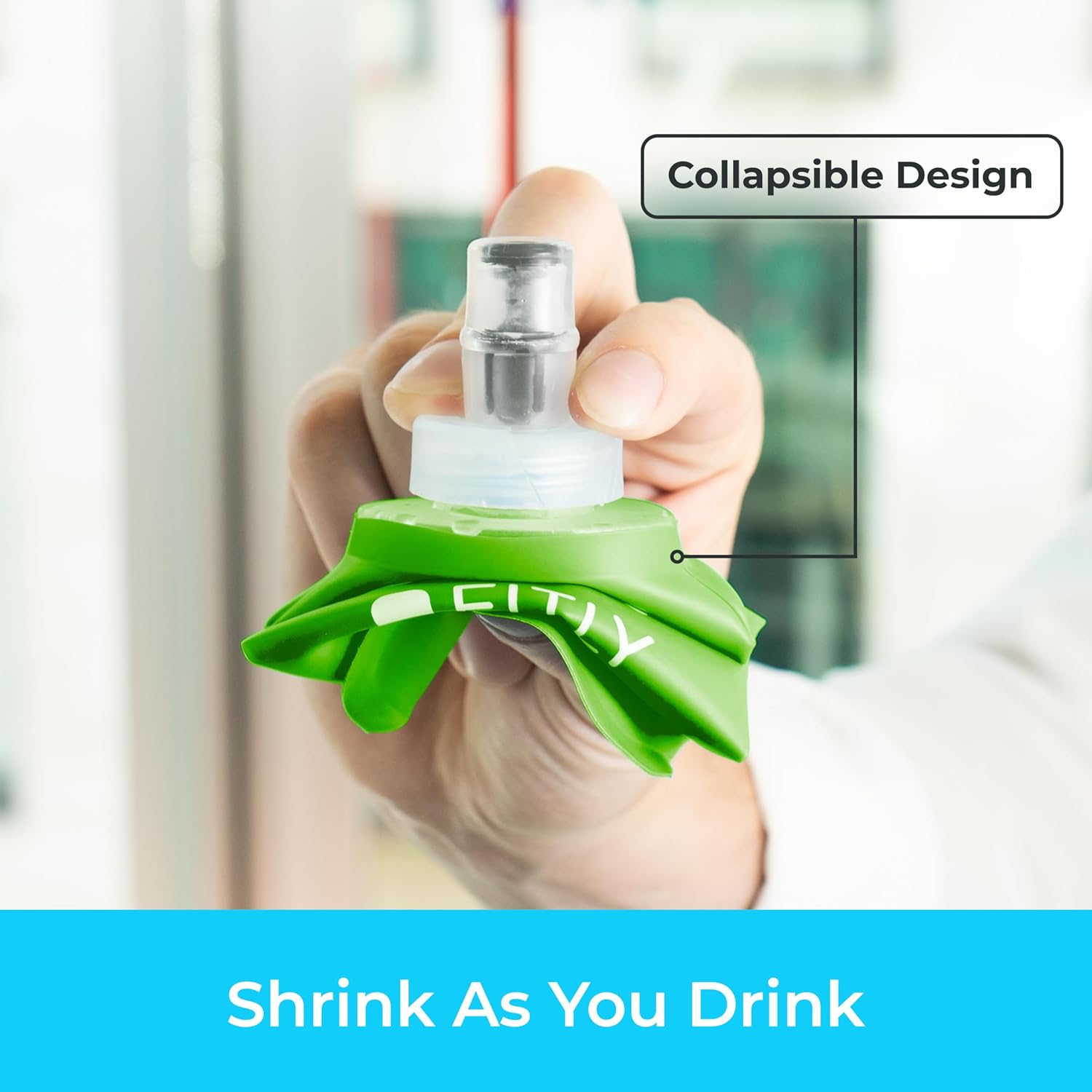 - HYDRATION ON THE MOVE: Our collapsible running soft flask is a compact and eco-friendly way to stay hydrated on the move! The soft water bottle is the perfect hydration tool for active individuals. Our soft water bottles for runners shrink as you drink, taking up minimal space and won’t slosh around, making it perfect for running, hiking, skiing, or any rigorous activity. Now available in a Green color option.