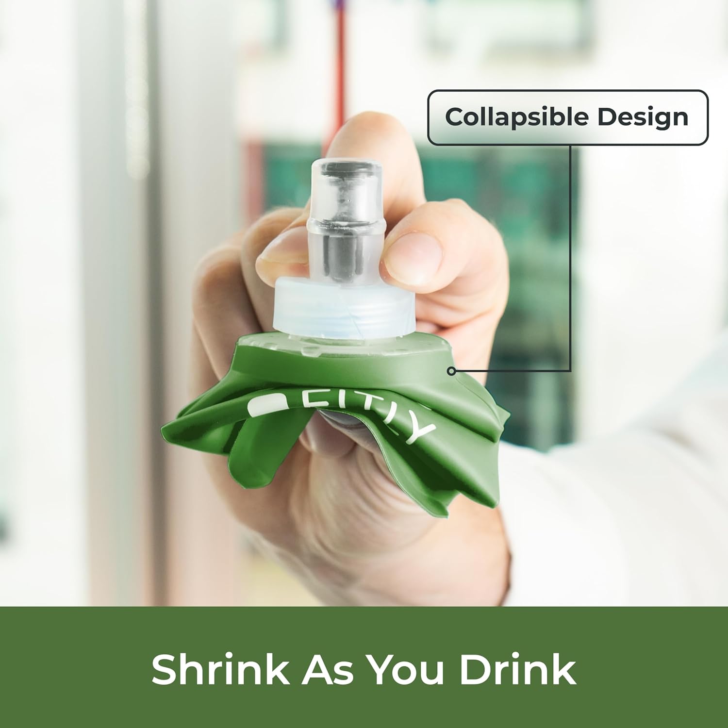 - HYDRATION ON THE MOVE: Our collapsible running soft flask is a compact and eco-friendly way to stay hydrated on the move! The soft water bottle is the perfect hydration tool for active individuals. Our soft water bottles for runners shrink as you drink, taking up minimal space and won’t slosh around, making it perfect for running, hiking, skiing, or any rigorous activity. Now available in a Forest Green color option.