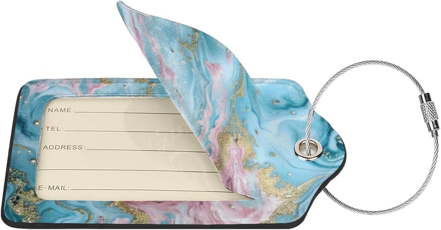 2 Pack Luggage Tag for Suitcase, Cute Unique Leather Suitcase Tags Identifiers with Privacy Name Address Labels & Durable Steel Loop for Women Men Travel