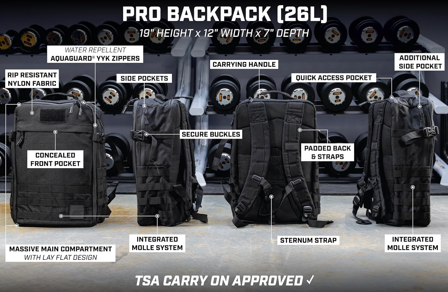 SERIOUS STEEL FITNESS Gym Bag, Rip-Resistant Fabric, Heavy Duty (Black, Backpack (Pro-Mini (26L) with Dividers))
