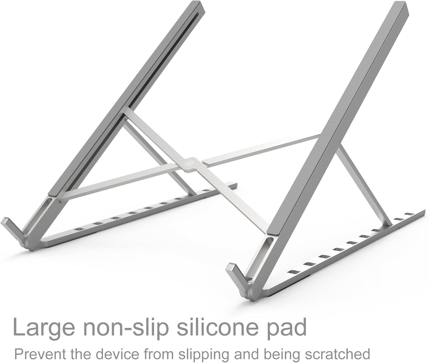 Aluminum Laptop Stand for Desk, Foldable Ventilated Cooling Notebook Stand, Adjustable Portable Laptop Holder, Compatible with 11" - 17.3" MacBook Pro Air, HP and Other laptops(Silver)