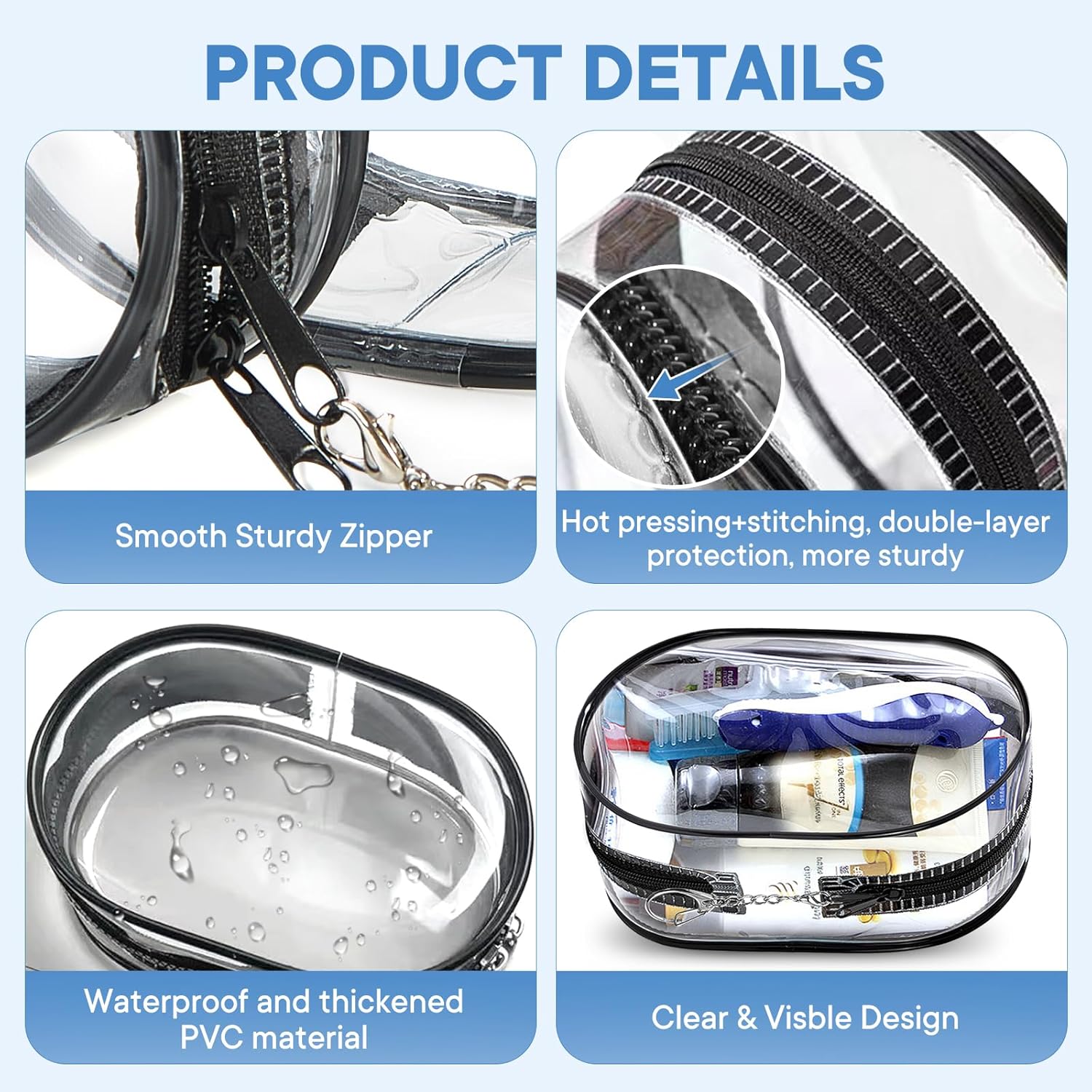 - 【Product Size 】 S: 4.1"*2.6"*1.6", M: 6.3"*3.5"*2.4", L:7.1"*4.7"*2.6", the top of each PVC transparent toiletry bag is designed with a zipper part, makes it safer to hold things without worrying about falling off, very considerate and practical. ❀ in order to meet the needs of different occasions, Therefore, please check the sizes before purchasing to avoid inconvenience. Thanks!❀